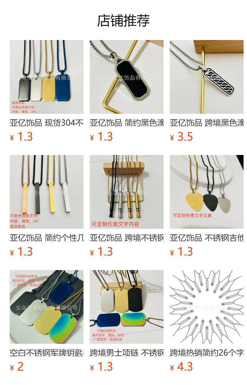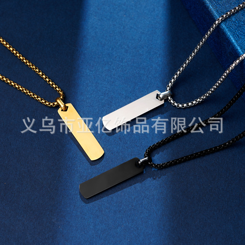 Cross-Border Simple Men's Stainless Steel Necklace with Engraving, Hot Selling Versatile Titanium Steel Long Sweater Chain, Hip-Hop Personality