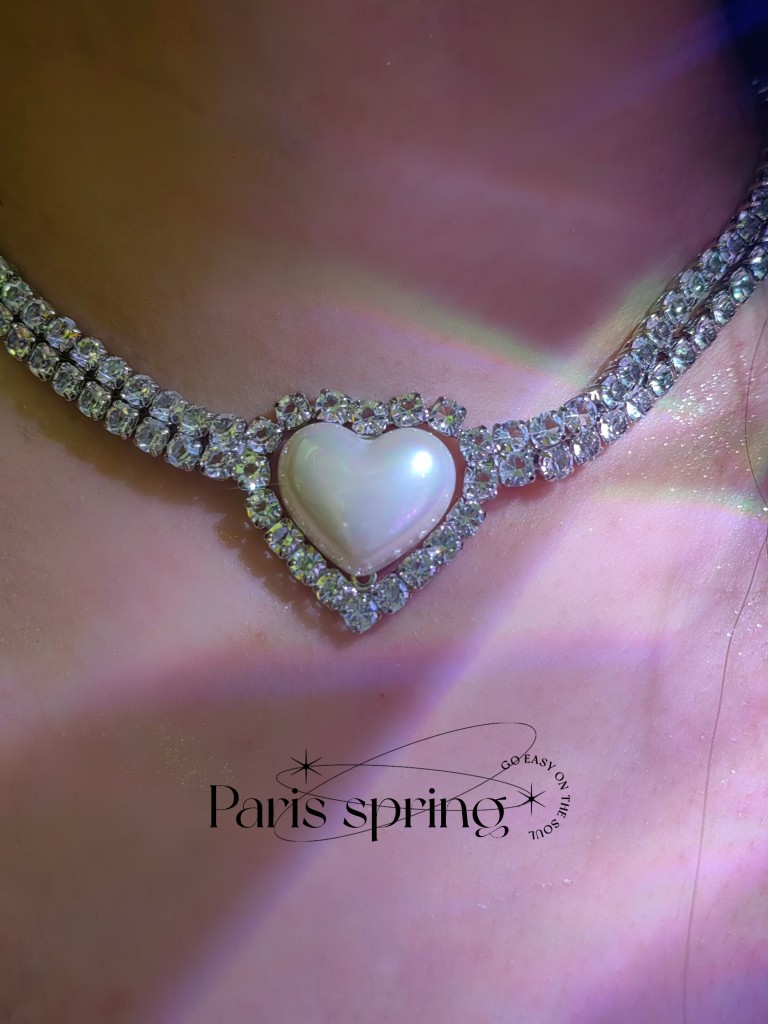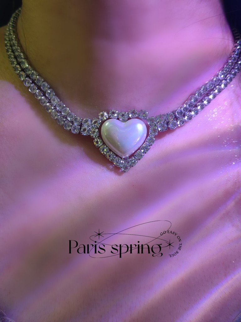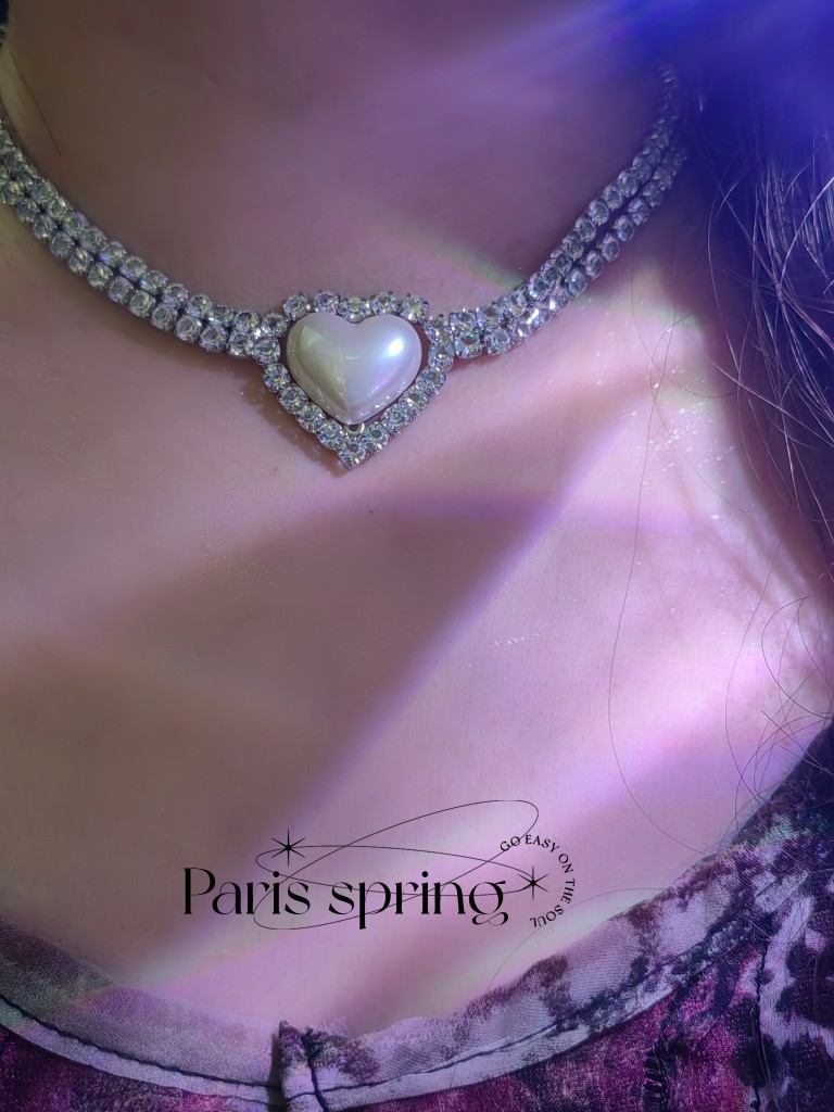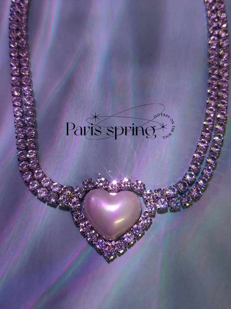 [Paris Spring] Love Zircon Shine Necklace Foreign Style All-match Internet Celebrity Noble Elegant Shine Cute