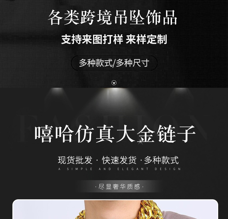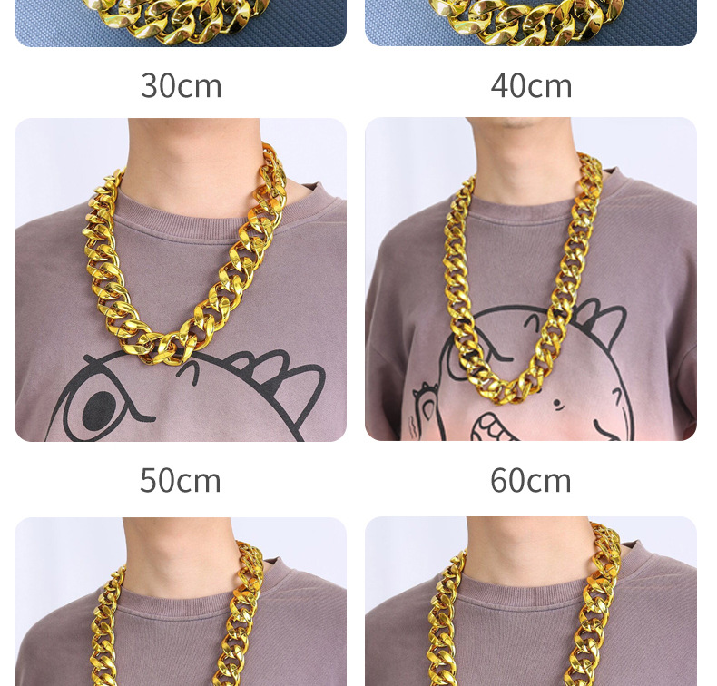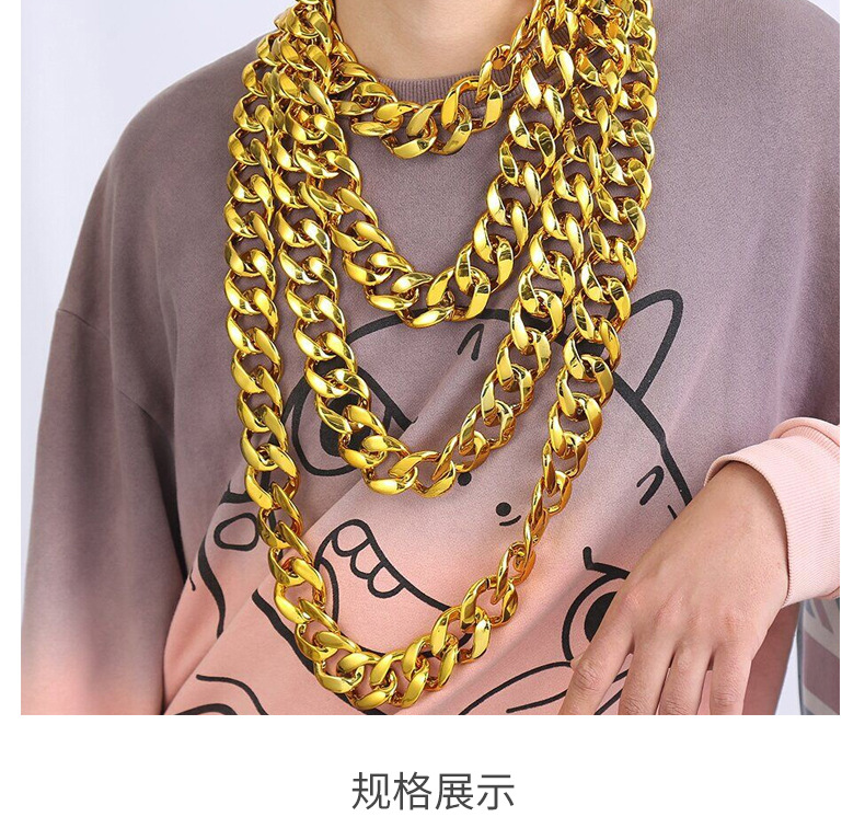 Hip Hop Simulation Big Gold Chain Men's Gold Plastic Necklace Performance Props Social Super Thick Exaggerated Gold Necklace