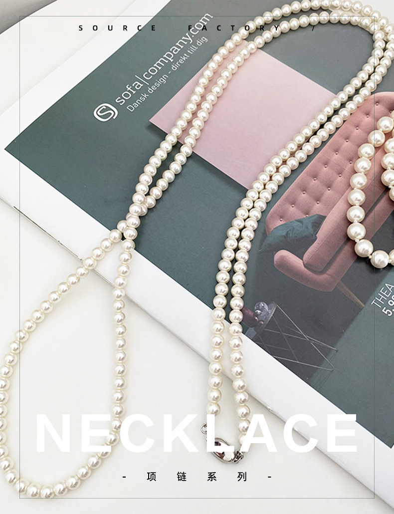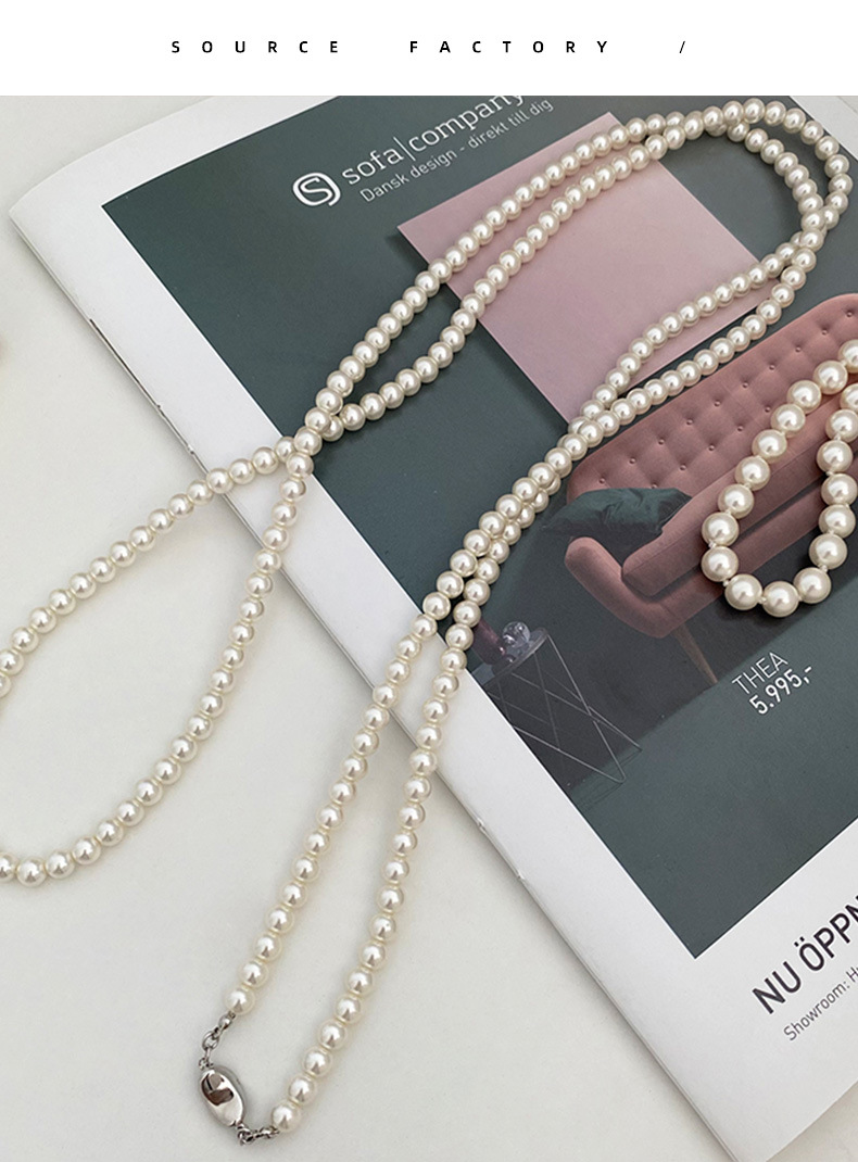 French Fashion High Brightness Shijia Pearl Woolen Chain Women's High-end Long Light Luxury All-match Design Sense Stacked Necklace