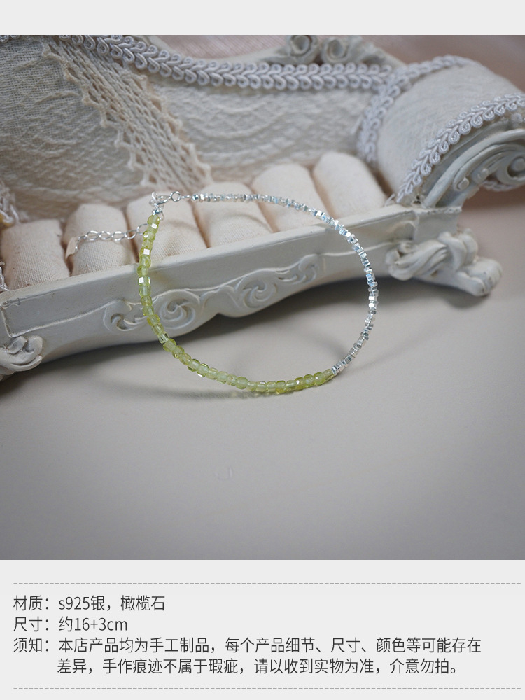 Qiyuan handmade olivine broken silver bracelet 925 silver fresh temperament bracelet niche bracelet female 30783