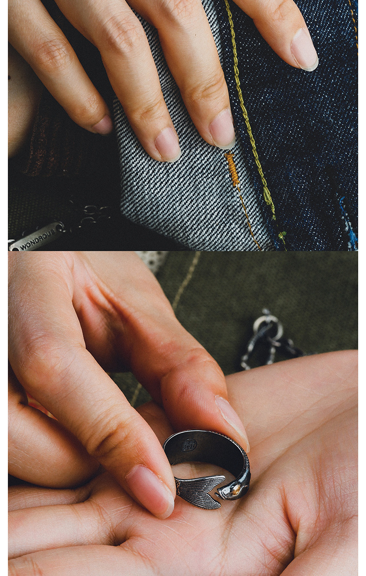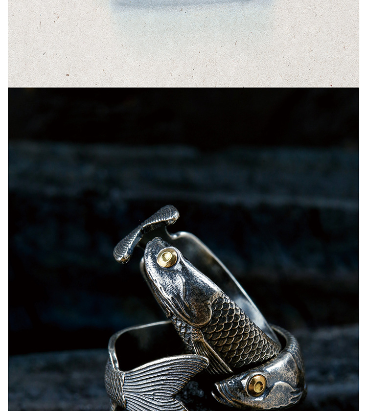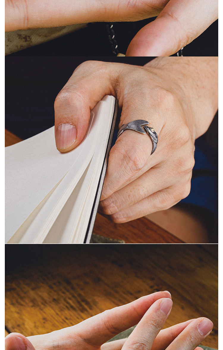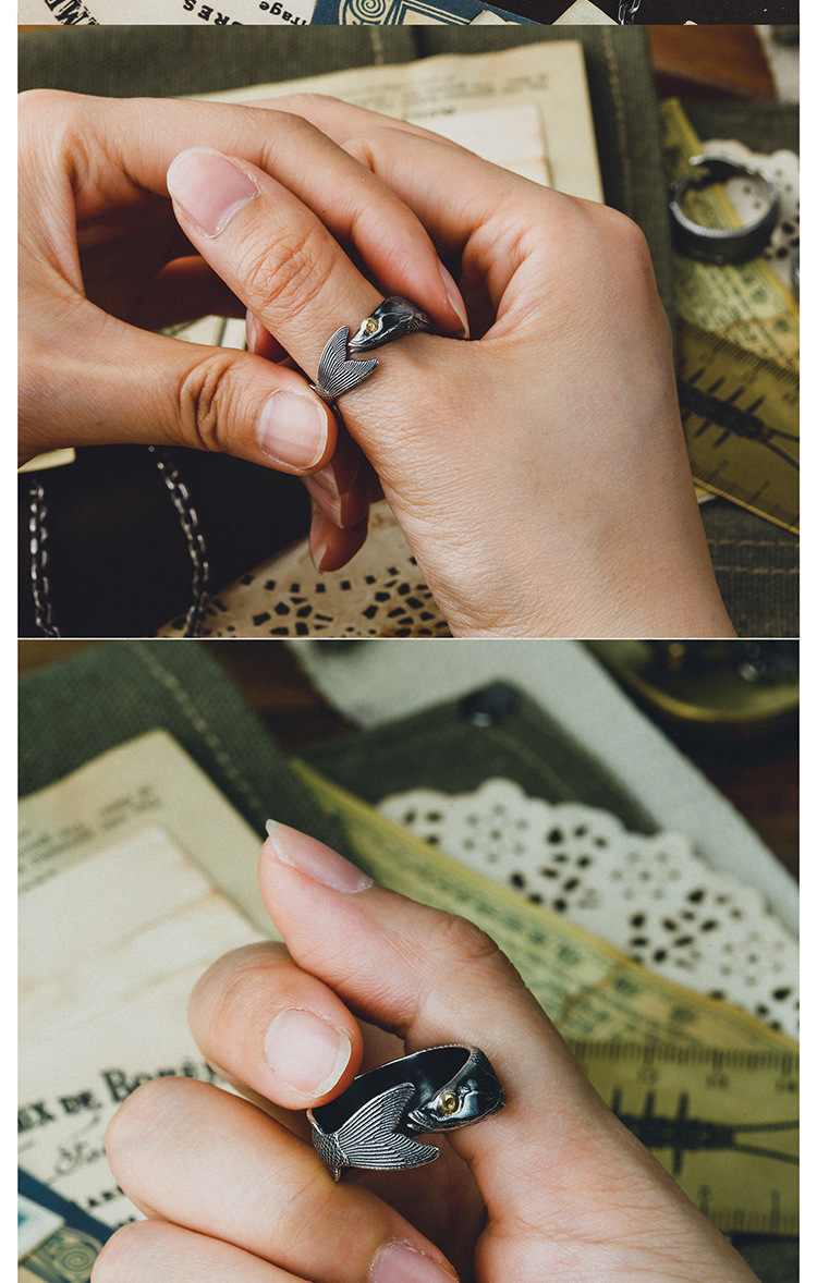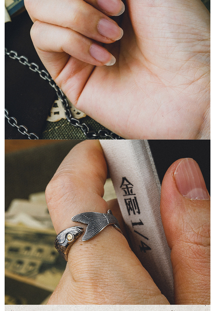 Chiba Original Fish-Shaped Ring 925 Thai Silver Gold-Plated Open Pleasure Ring Retro Stylish Fashion Adjustable Men