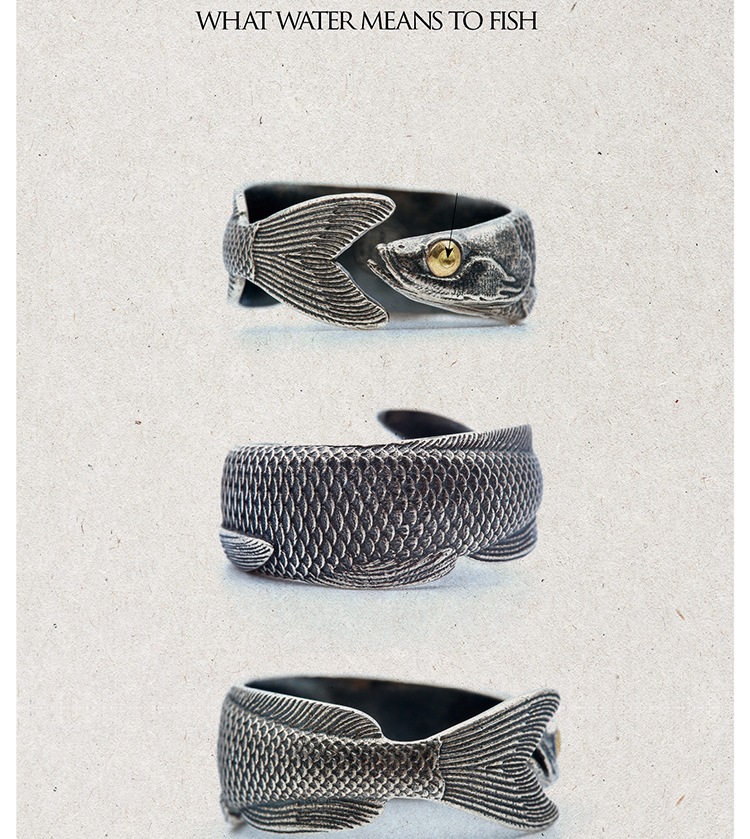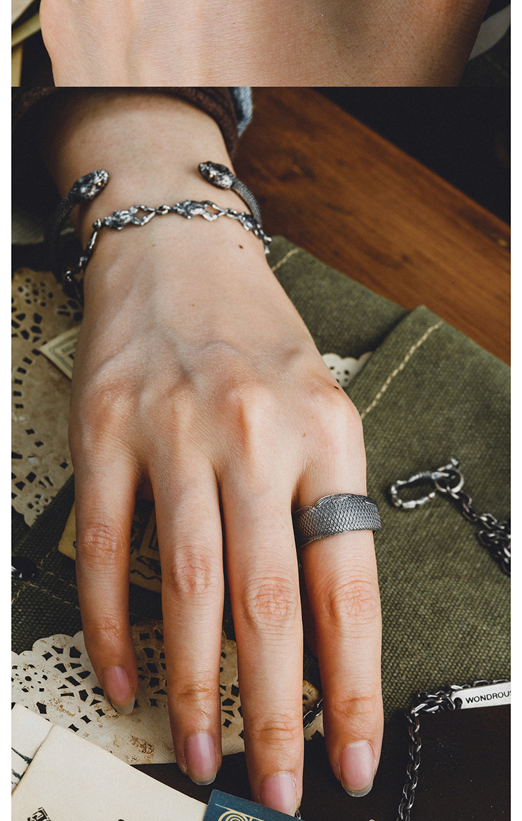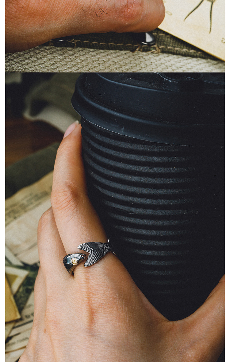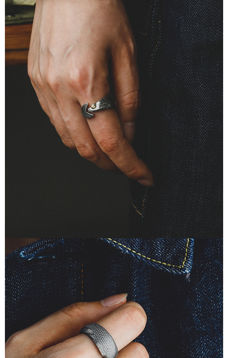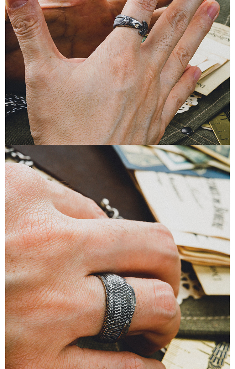 Chiba Original Fish-Shaped Ring 925 Thai Silver Gold-Plated Open Pleasure Ring Retro Stylish Fashion Adjustable Men