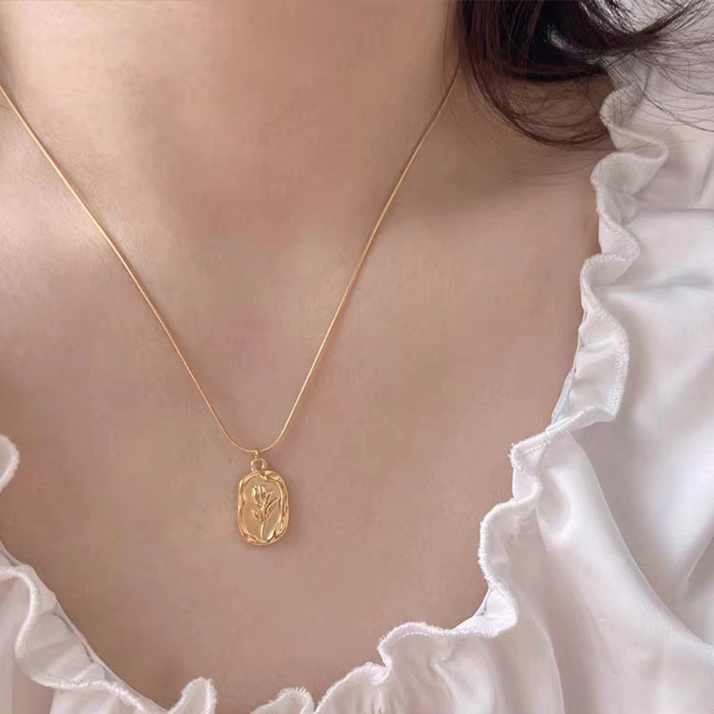 Cross-border wholesale 2023 New rose square brand titanium steel necklace women's 18K gold plated simple light luxury design lock