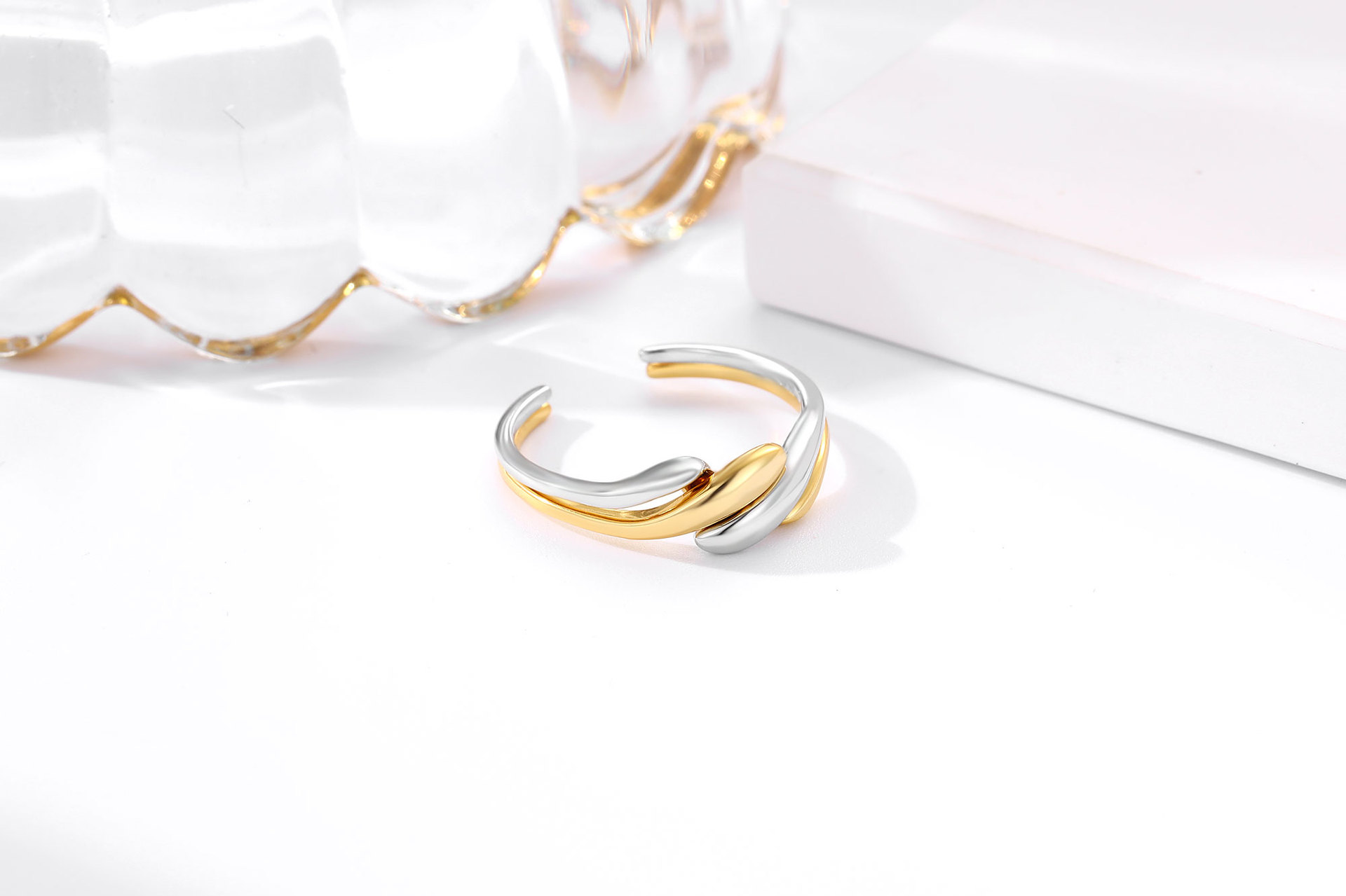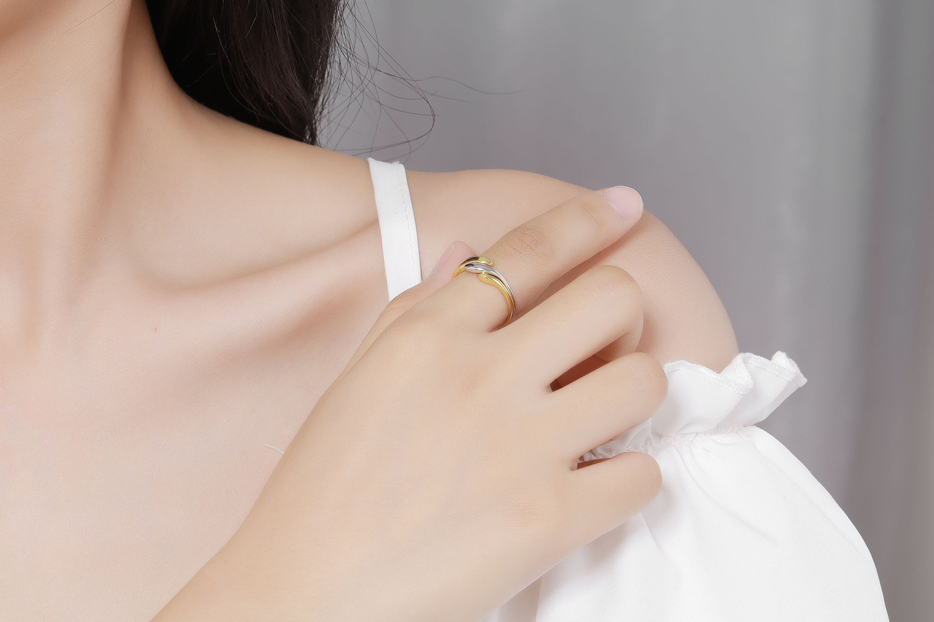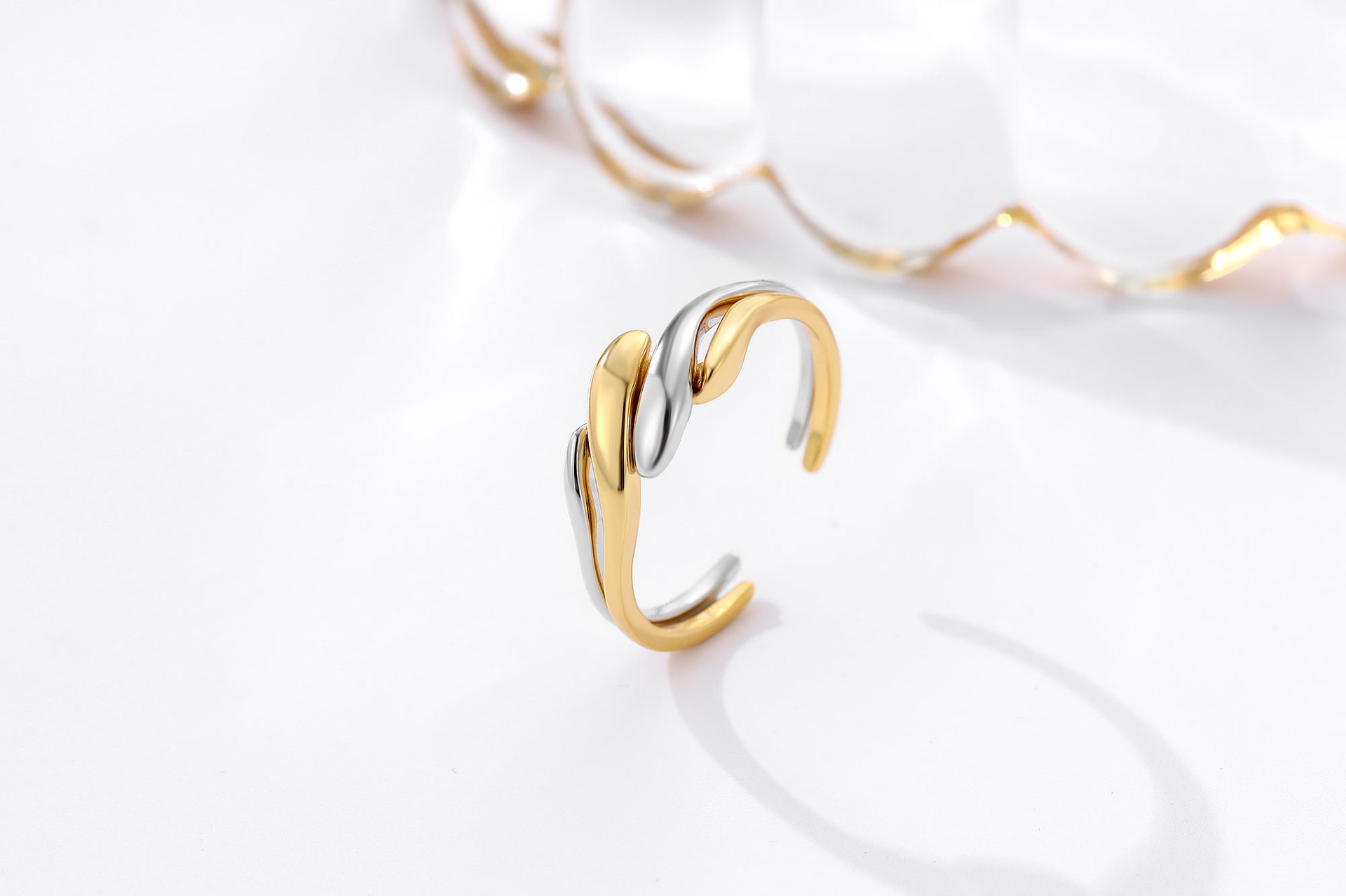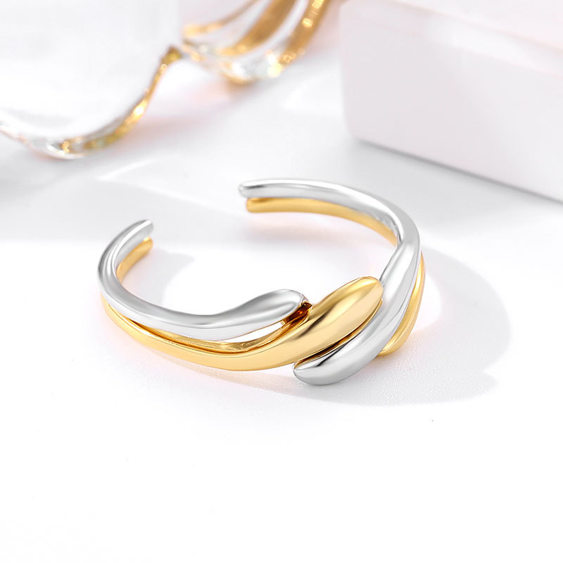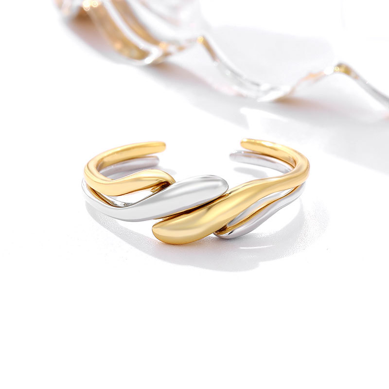 European and American Japanese and Korean 925 sterling silver ring women's two-in-one combination 18K gold plated ring personality niche winding punk