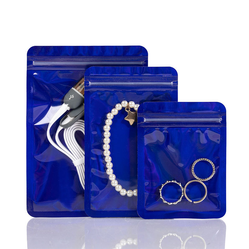 Color ziplock bag anti-oxidation stud earrings packaging bag holographic laser inner printed bone bag necklace jewelry sealed bag