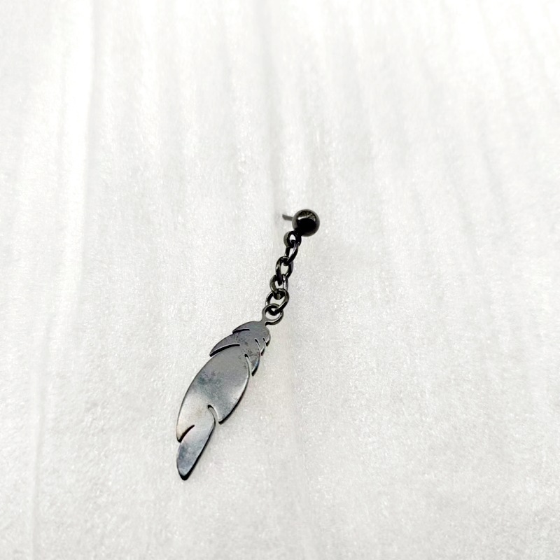 Color: Black need ear hole 4mm ball ear studs hanging leaves single