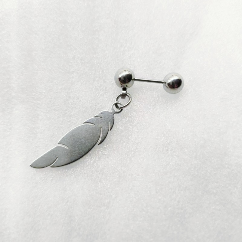 Color: Steel color need ear hole 6mm barbell hanging leaves single
