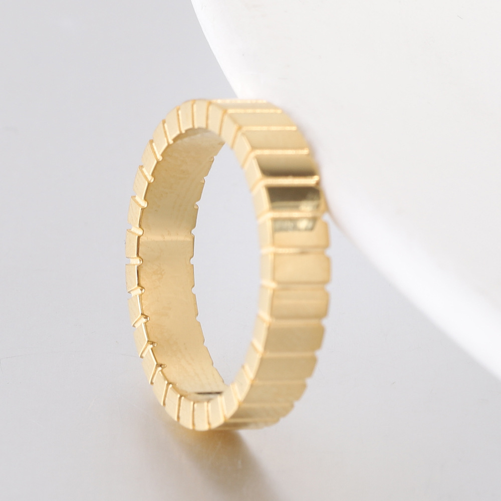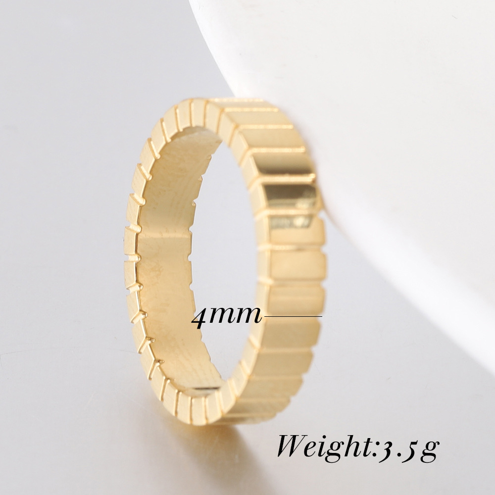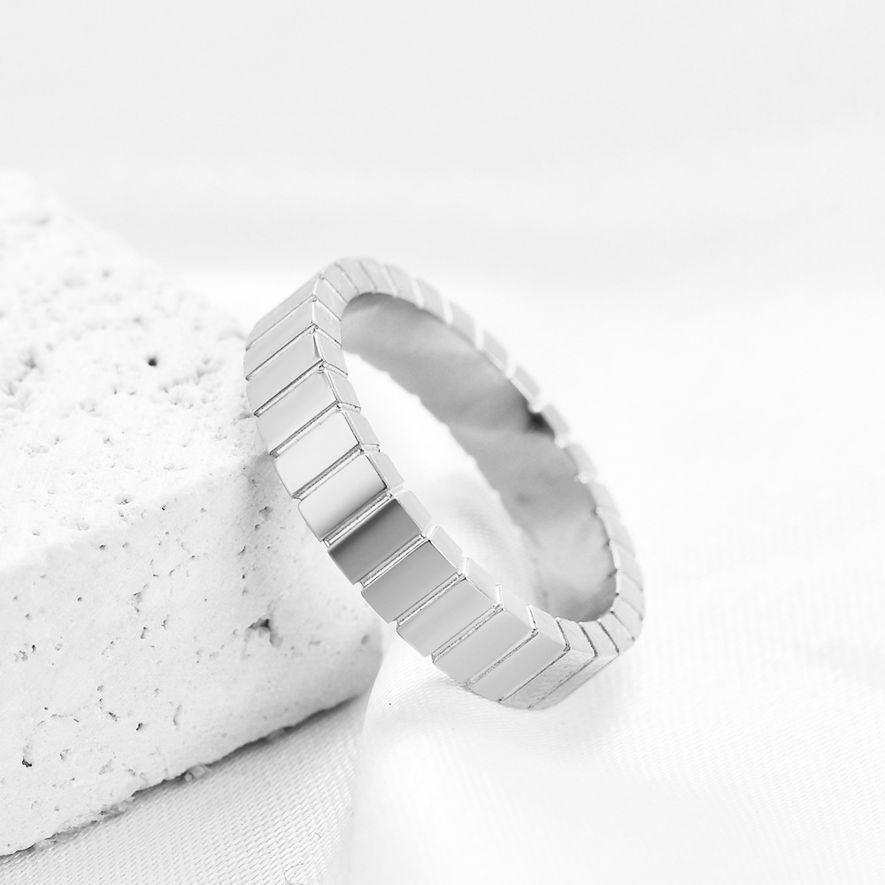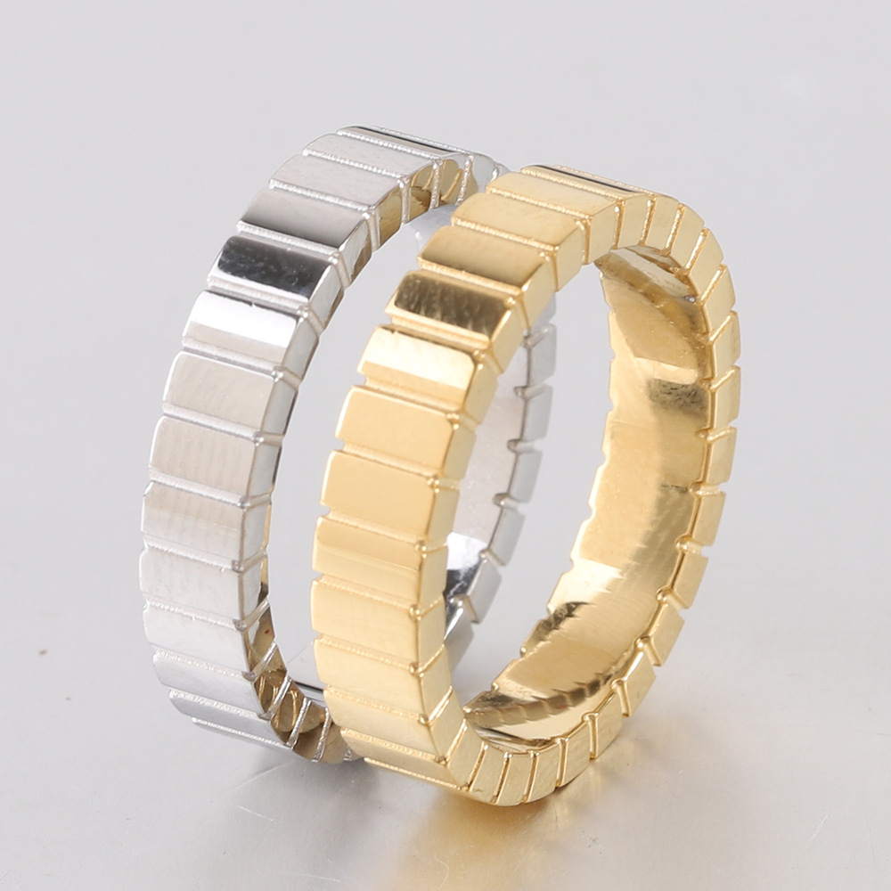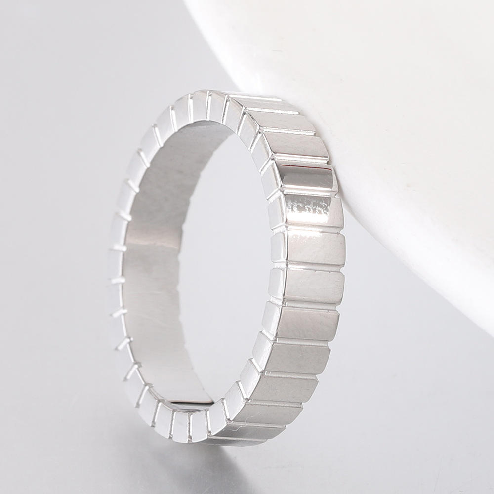 Manufacturer Wholesale European and American Cross-Border New 4mm Rectangular Plaid Fashion Simple Stripesd Stainless Steel Ring Hot Sale