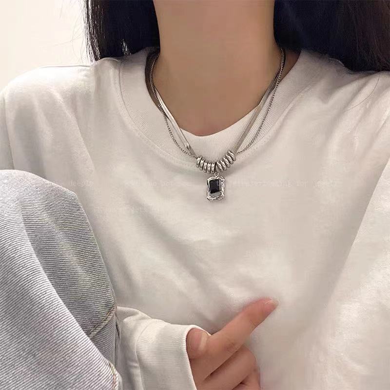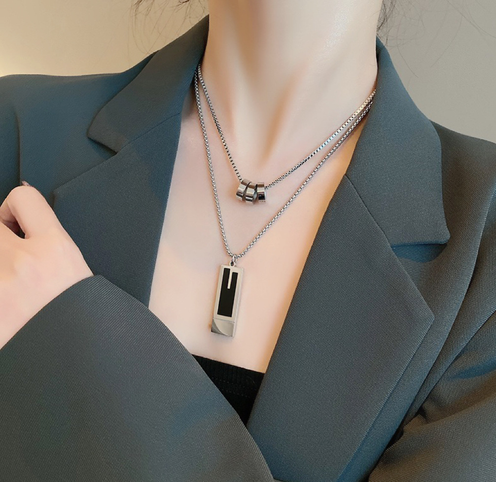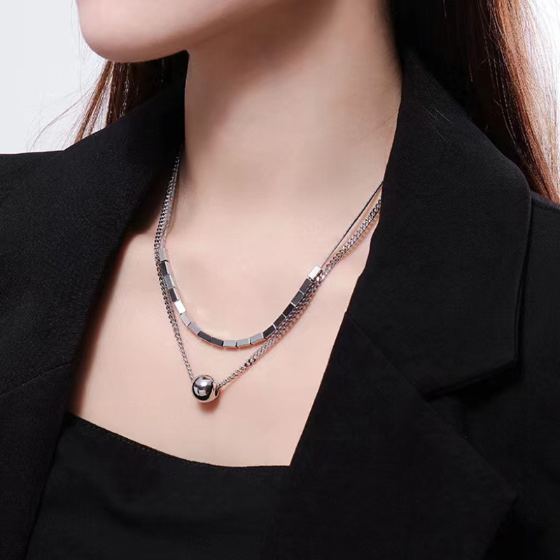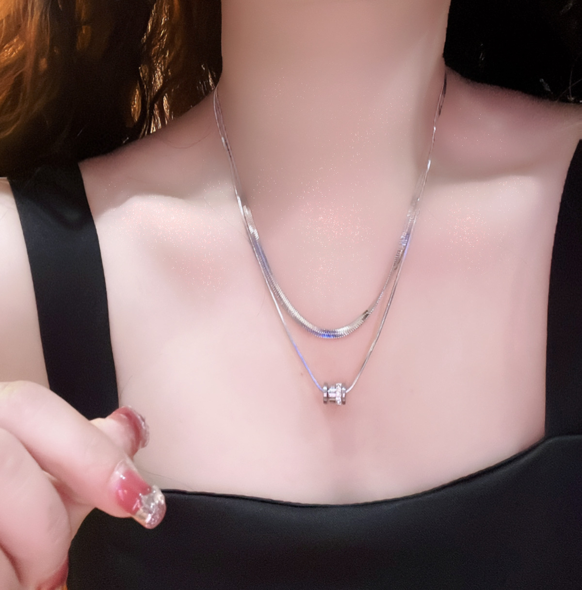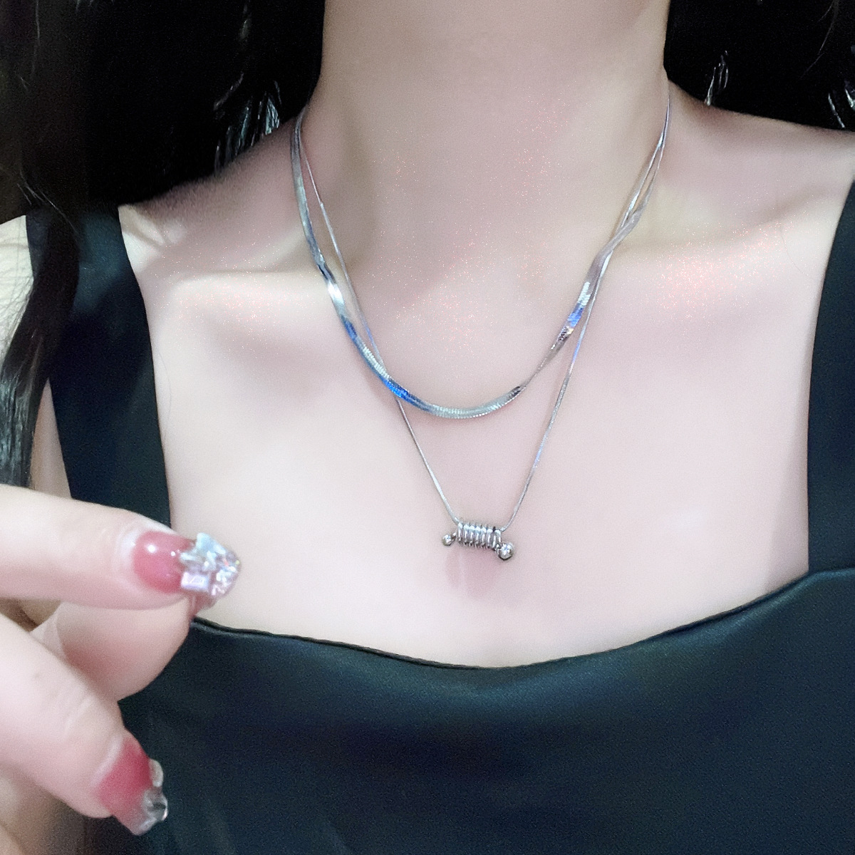 Double-layer stacked titanium steel non-fading clavicle chain light luxury niche necklace women's high-grade simple design accessories