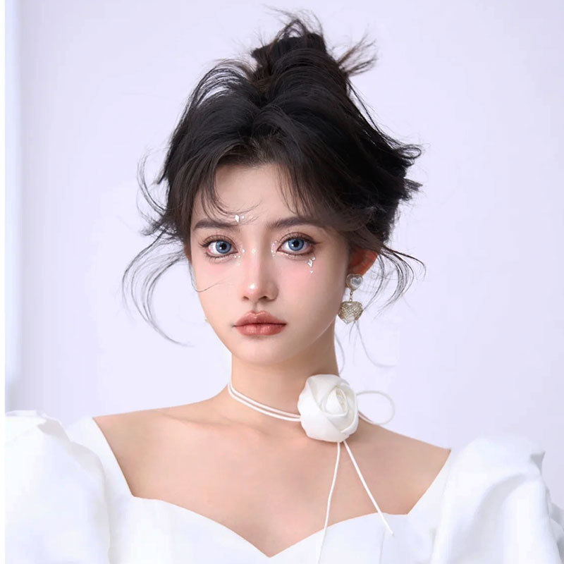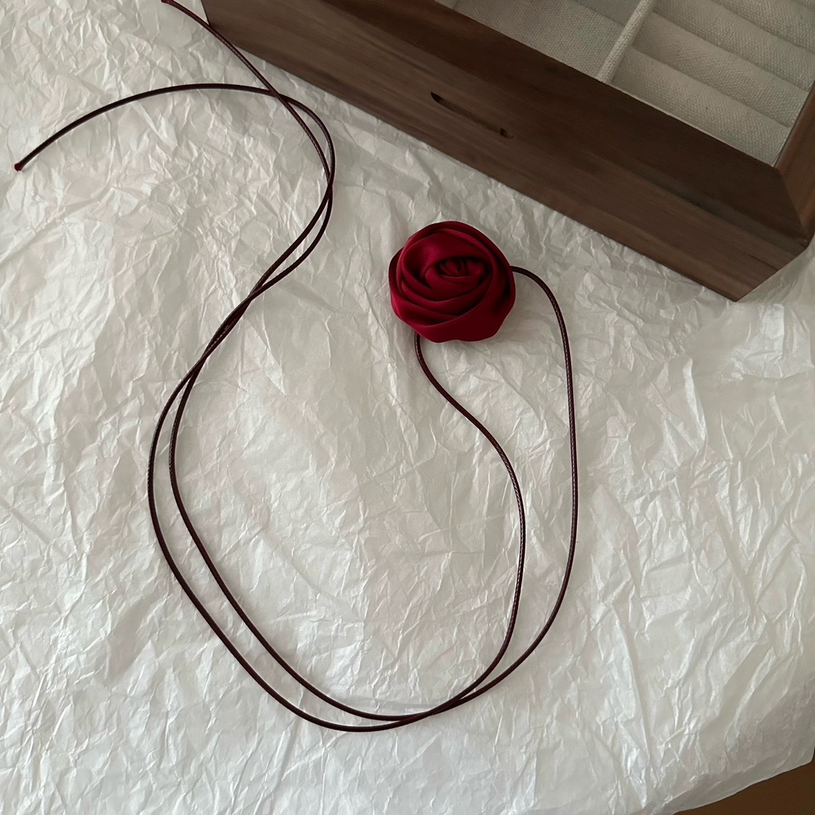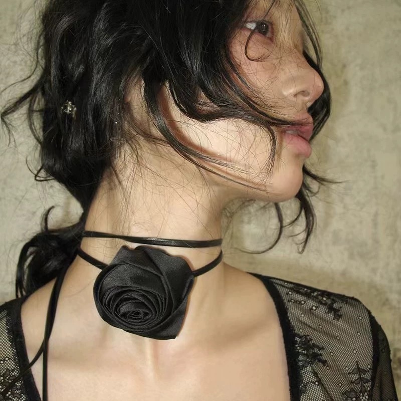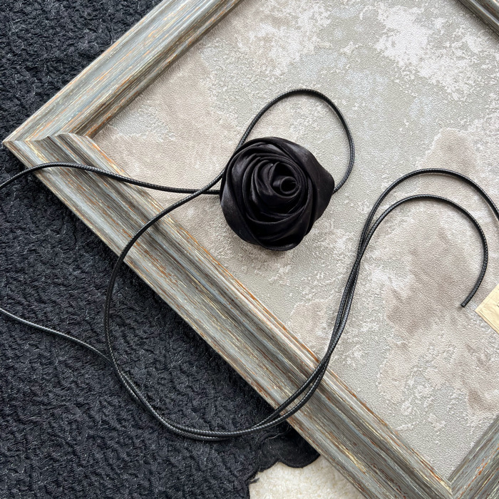 French niche retro pure rose choker collar silk necklace sexy waist rope holiday temperament strap