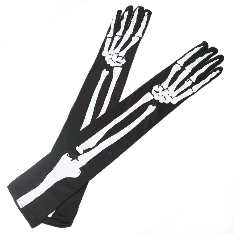 Halloween Skull Gloves 50cm Long Horror Prom Party Gloves Foreign Trade Export Wholesale