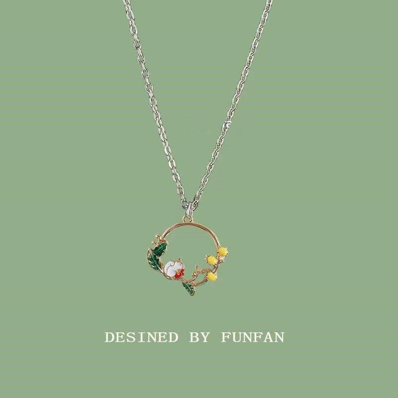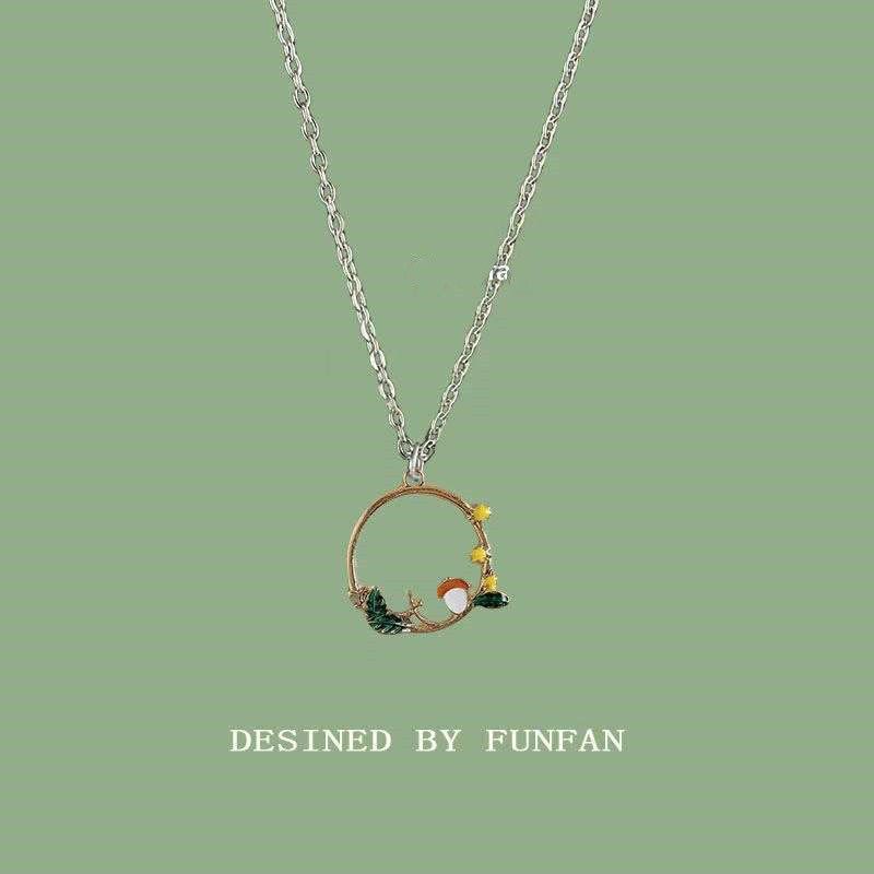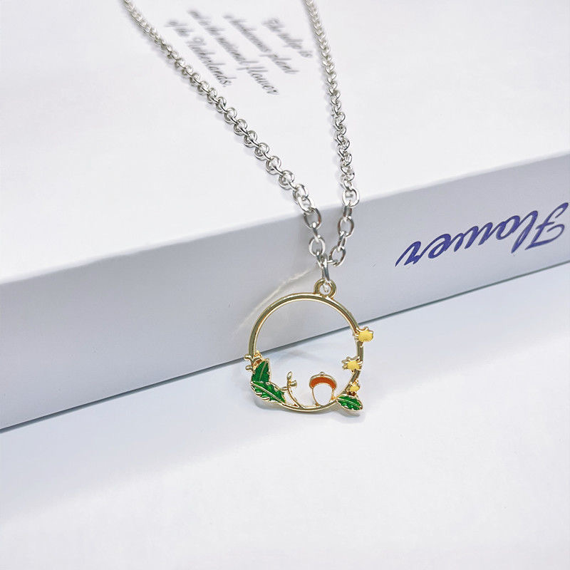 ins Round Garland Squirrel Acorn Simple Couple Bestie Necklace Student Cute Trendy Cartoon Sweatshirt Pendant