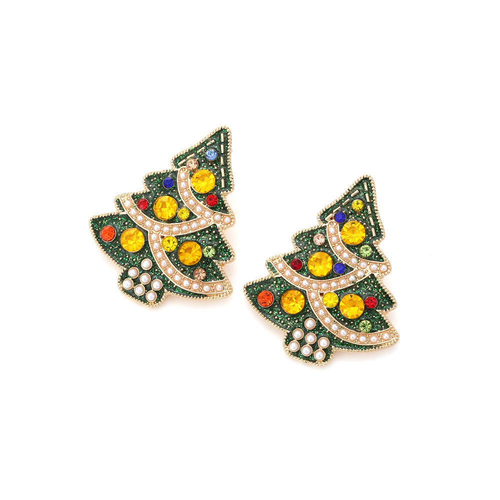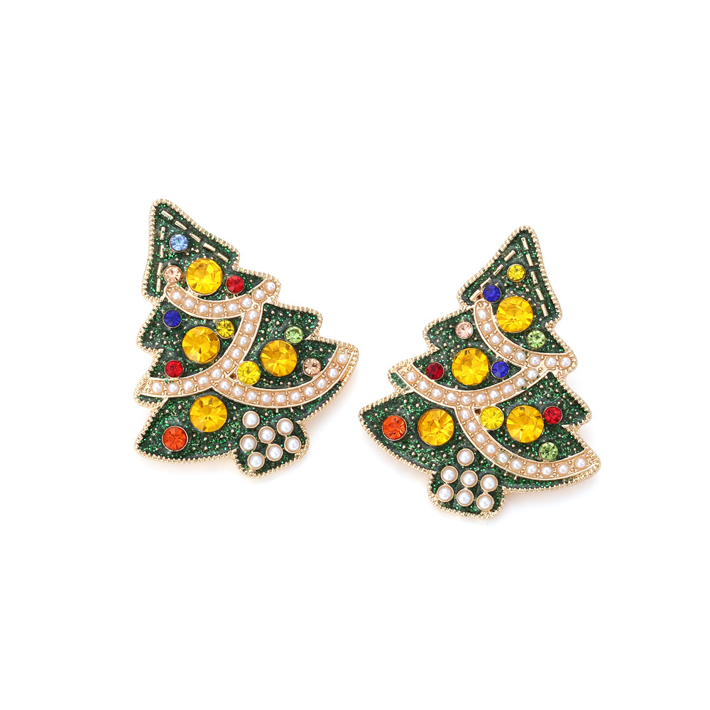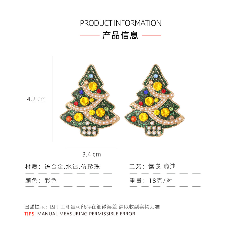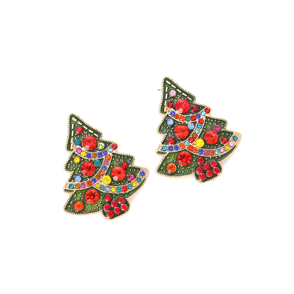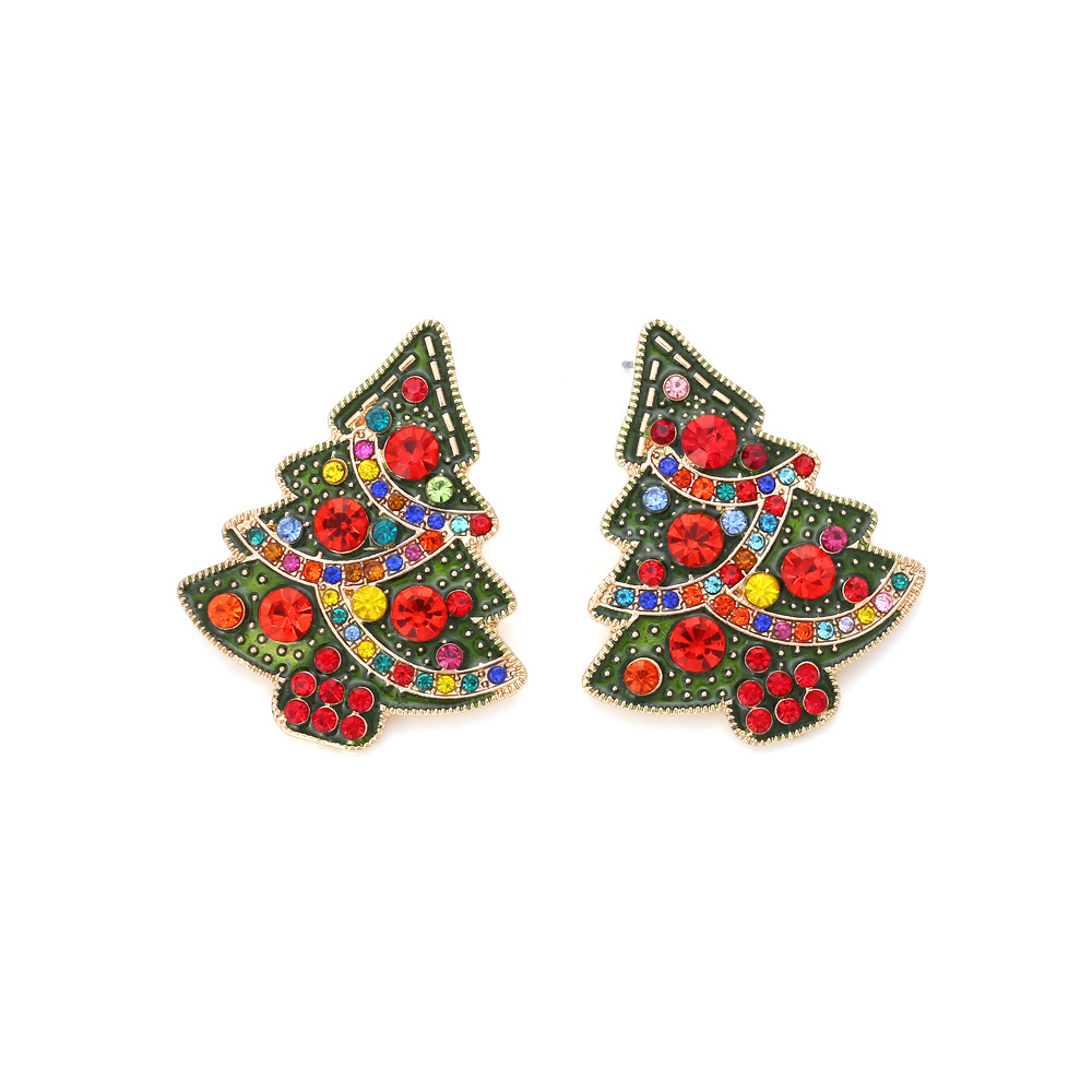 European and American new cute colored diamond Christmas tree earrings female fashion alloy drop oil earrings Christmas earrings wholesale