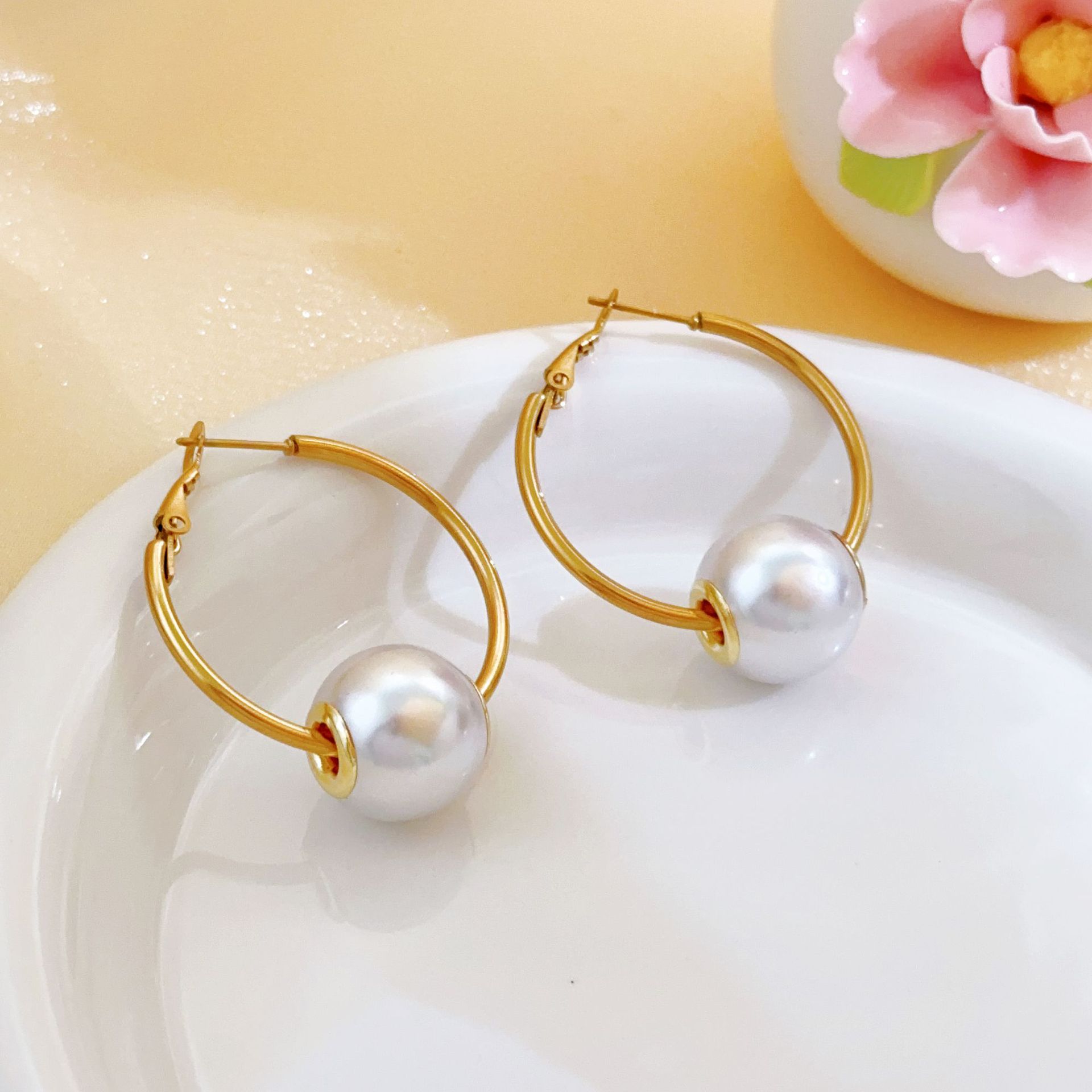 New Double-layer Pearl Niche High-end Titanium Steel Necklace Women's All-match Elegant Clavicle Chain Light Luxury Fashion Earrings Set