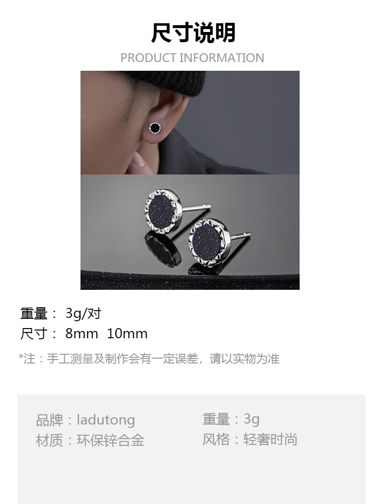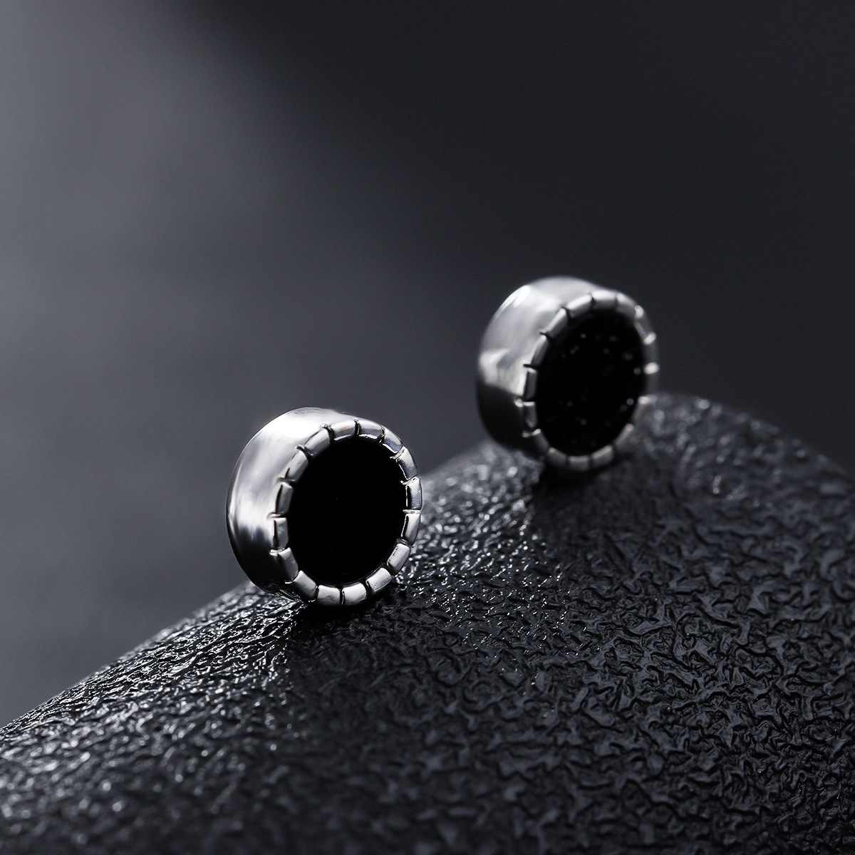 Men's Trendy Minimalist Retro Black Stud Earrings with Simple Blue Sand Irregular Lace Magnetic Ear Clips