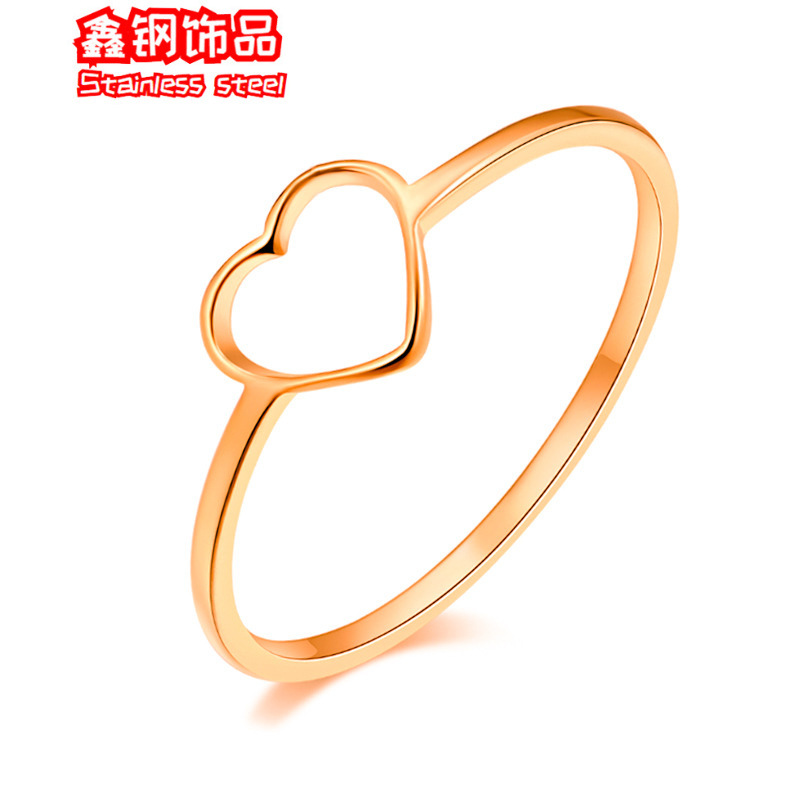 Cross-border Hot Sale Titanium Steel Love Heart-shaped Hollow Ring Not Falling Female Niche Couple Ring Stainless Steel Ring