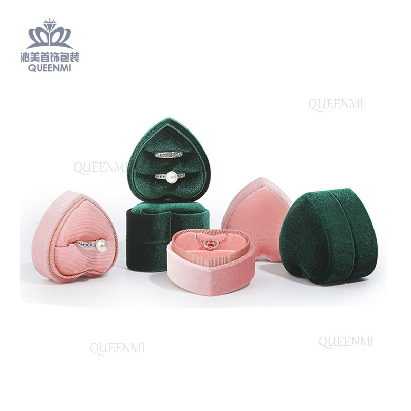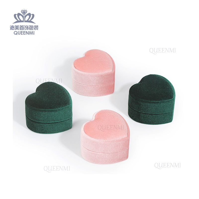 Sky cover heart-shaped velvet ring pendant box Korean velvet proposal double ring heart-shaped box fixed logo