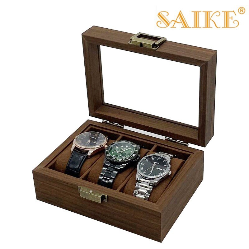 【名称】:复古版黑胡桃纹木质3位手表收纳展示盒;