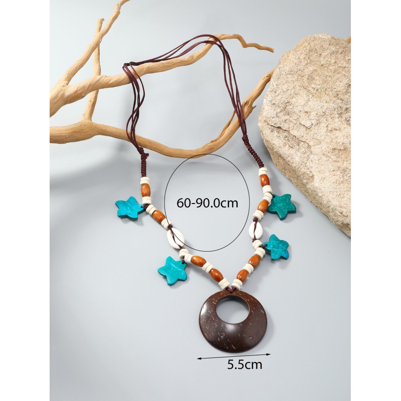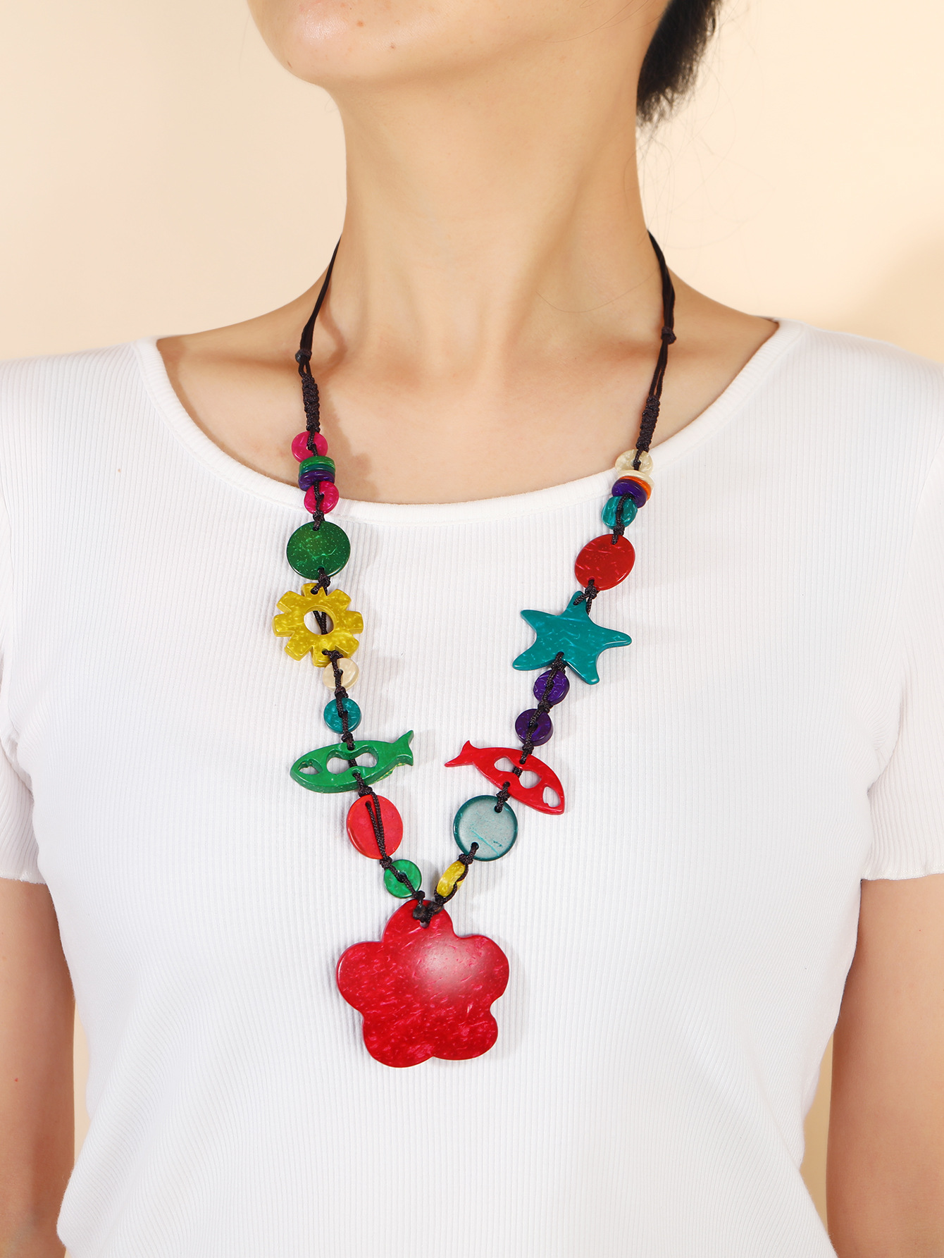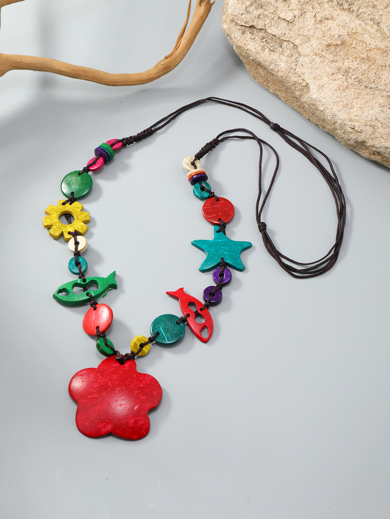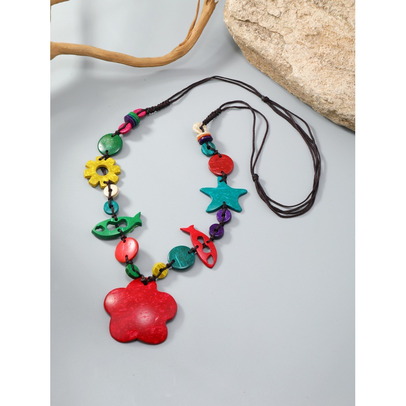 Bohemian ethnic style European and American long multi-layer colorful flower coconut shell wooden beads vintage hand-woven necklace