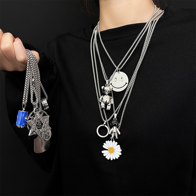 All-match titanium steel chain fashion brand necklace men's hip hop personality Street alloy pendant men's and women's sweater chain Accessories Wholesale