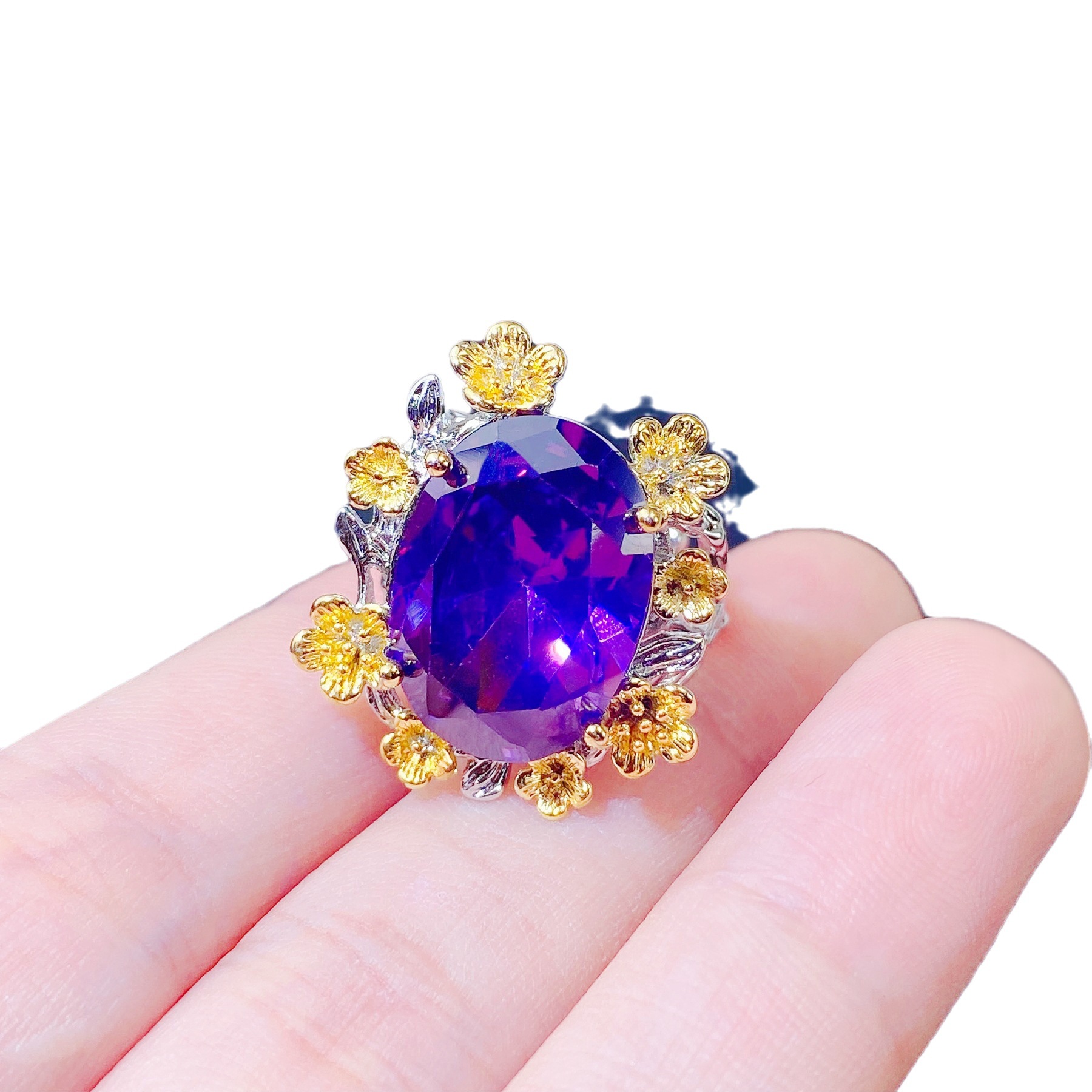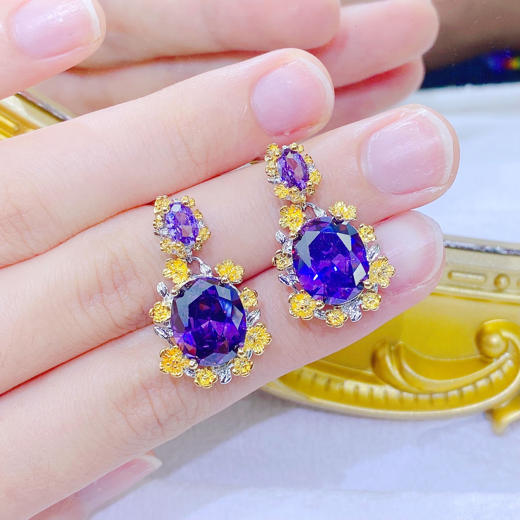 Italian retro palace style proud plum purple diamond suit Daisy colorful treasure pendant earrings bracelet open female