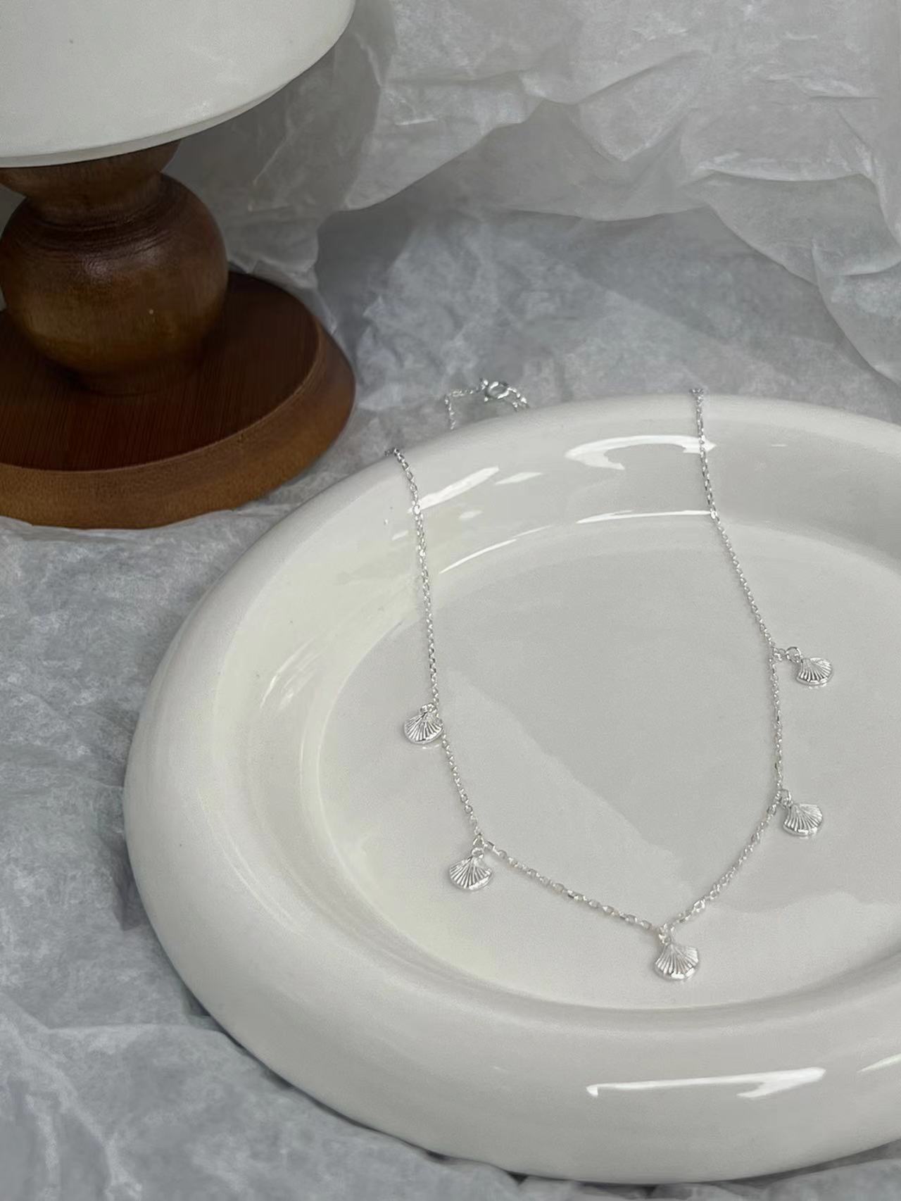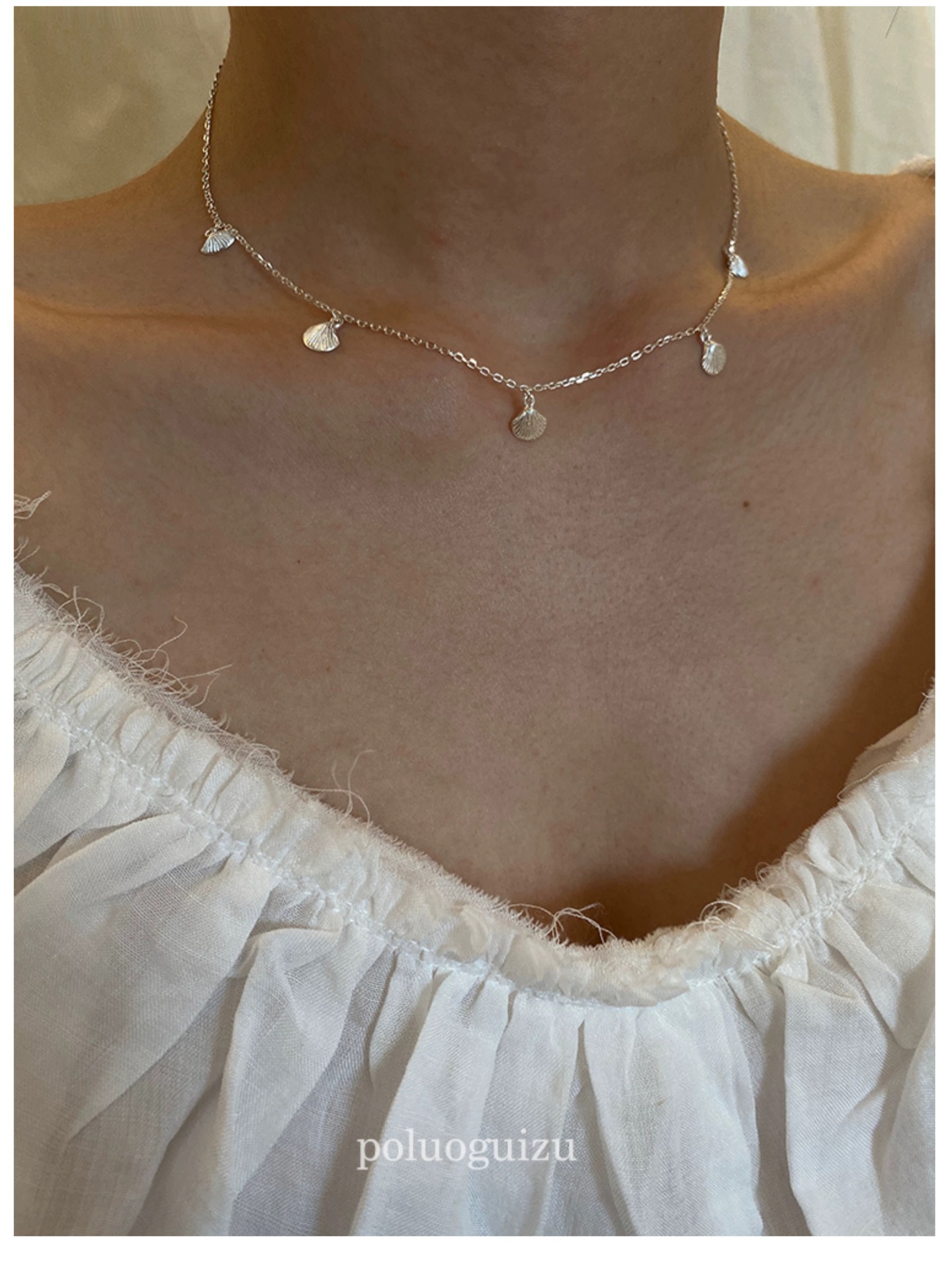 s925 Silver small shell choker clavicle chain necklace designed by weekend ins style niche women's mixed and stacked wear