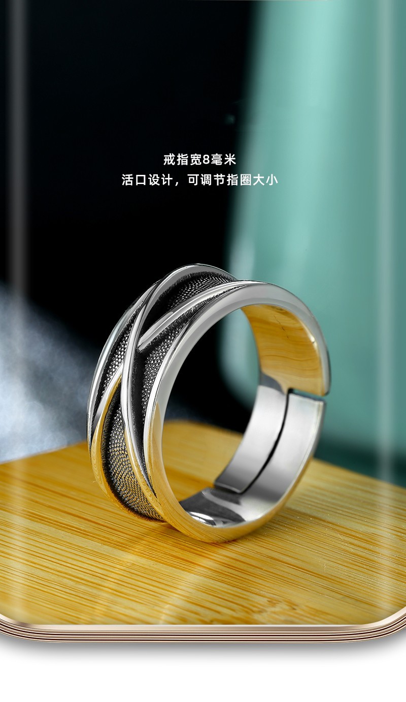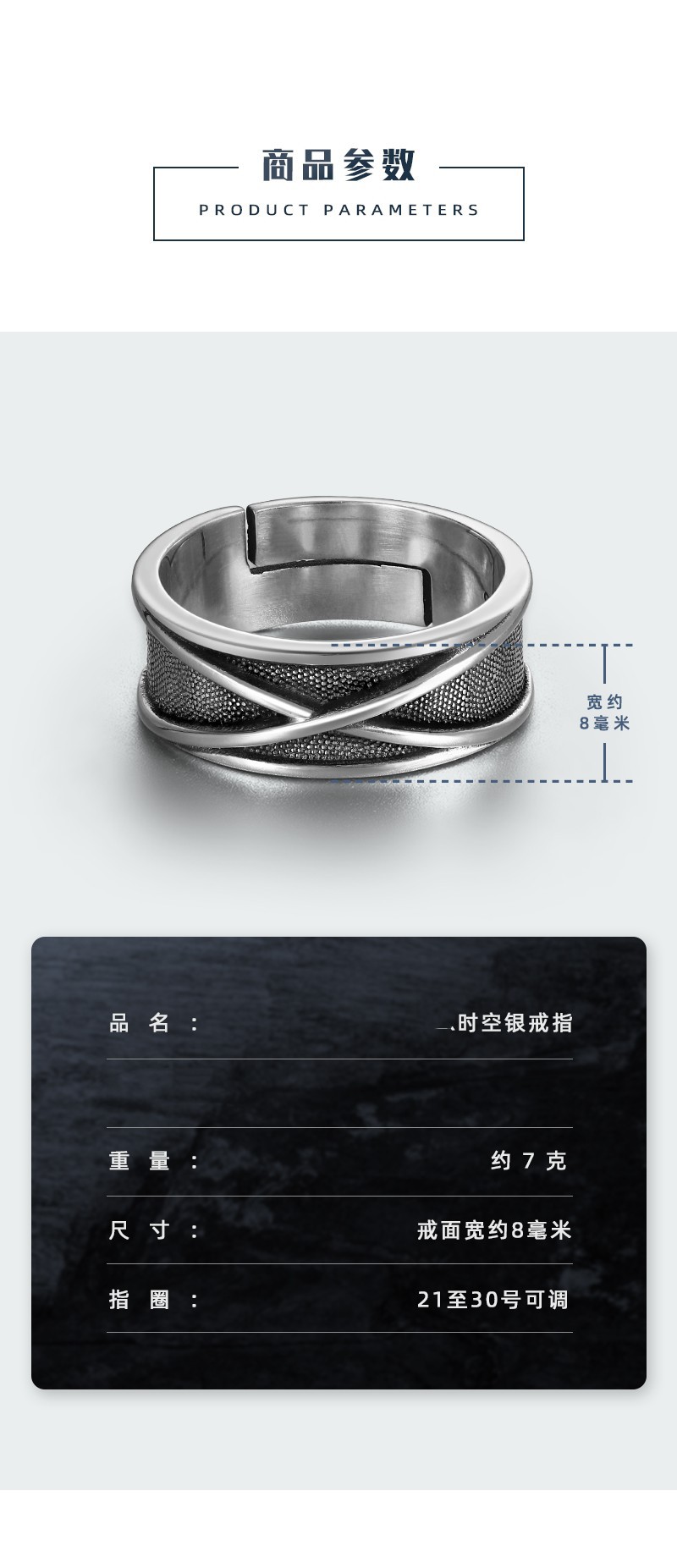 Qianye niche design high-grade space-time Thai silver ring men's personality fashion all-match retro ring women's jewelry