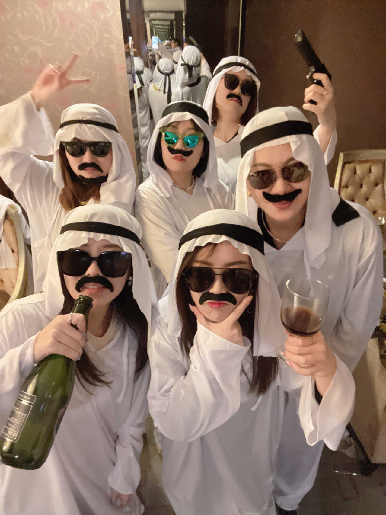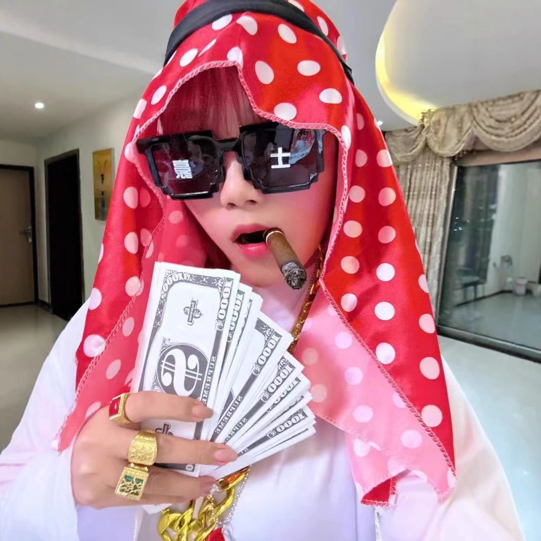 Color: Tuhao Gold Arab + flash dollar glasses (send Beard