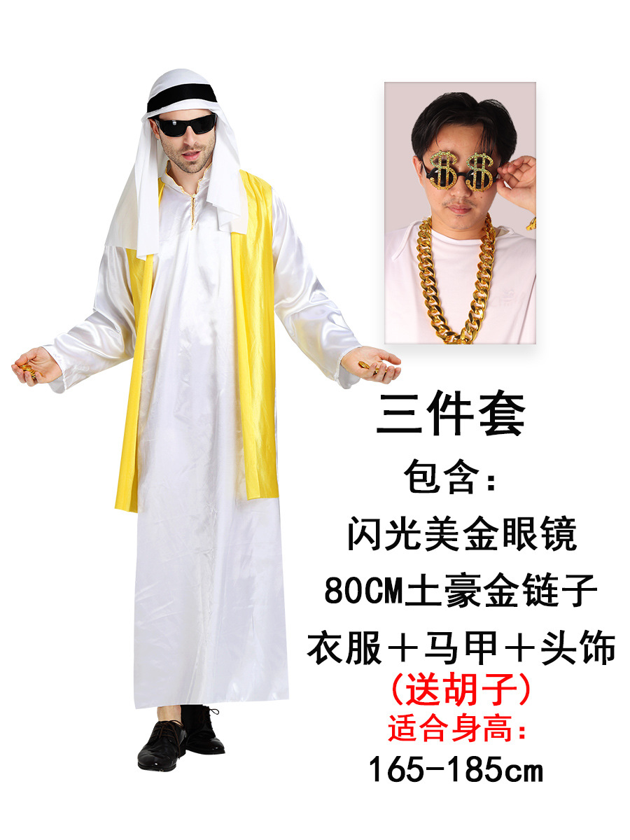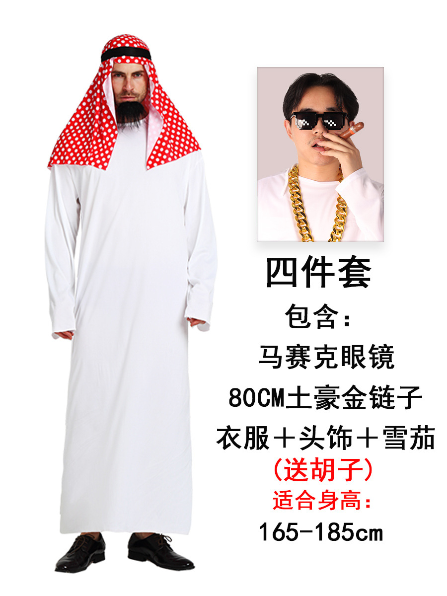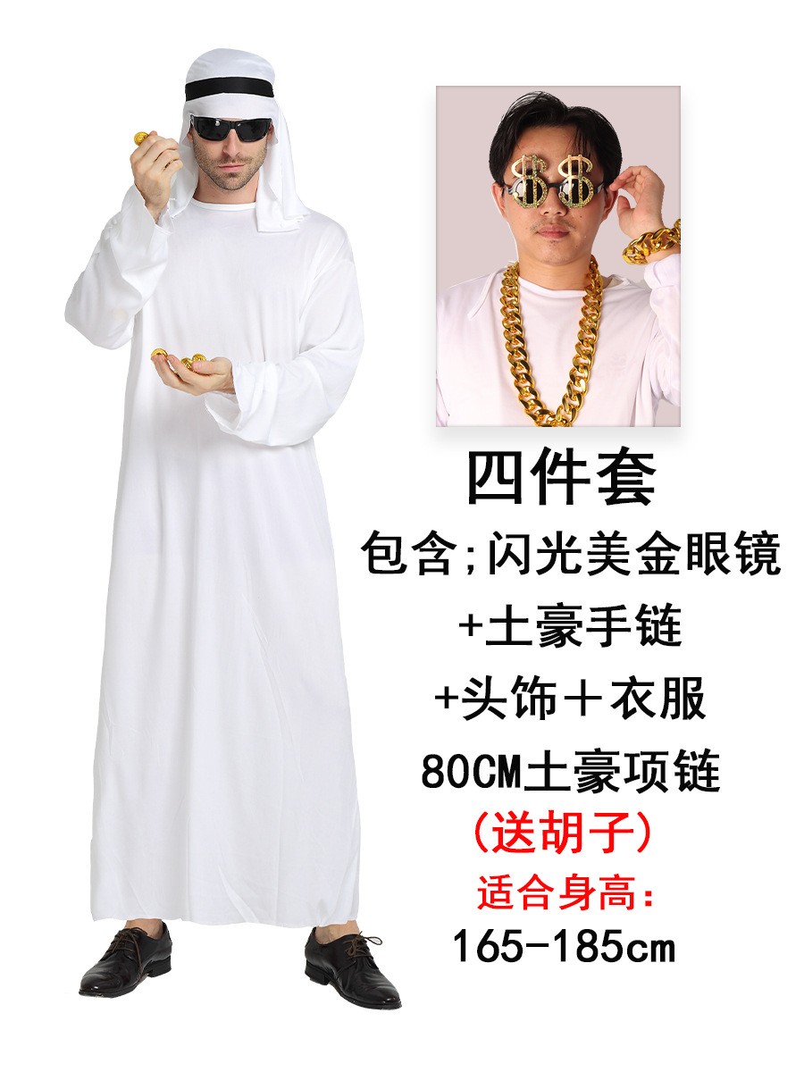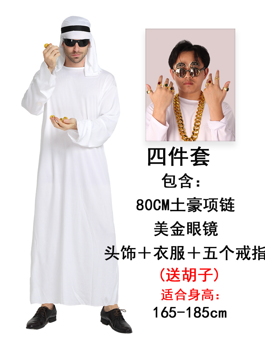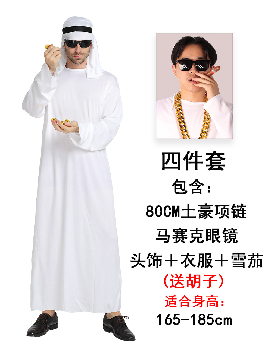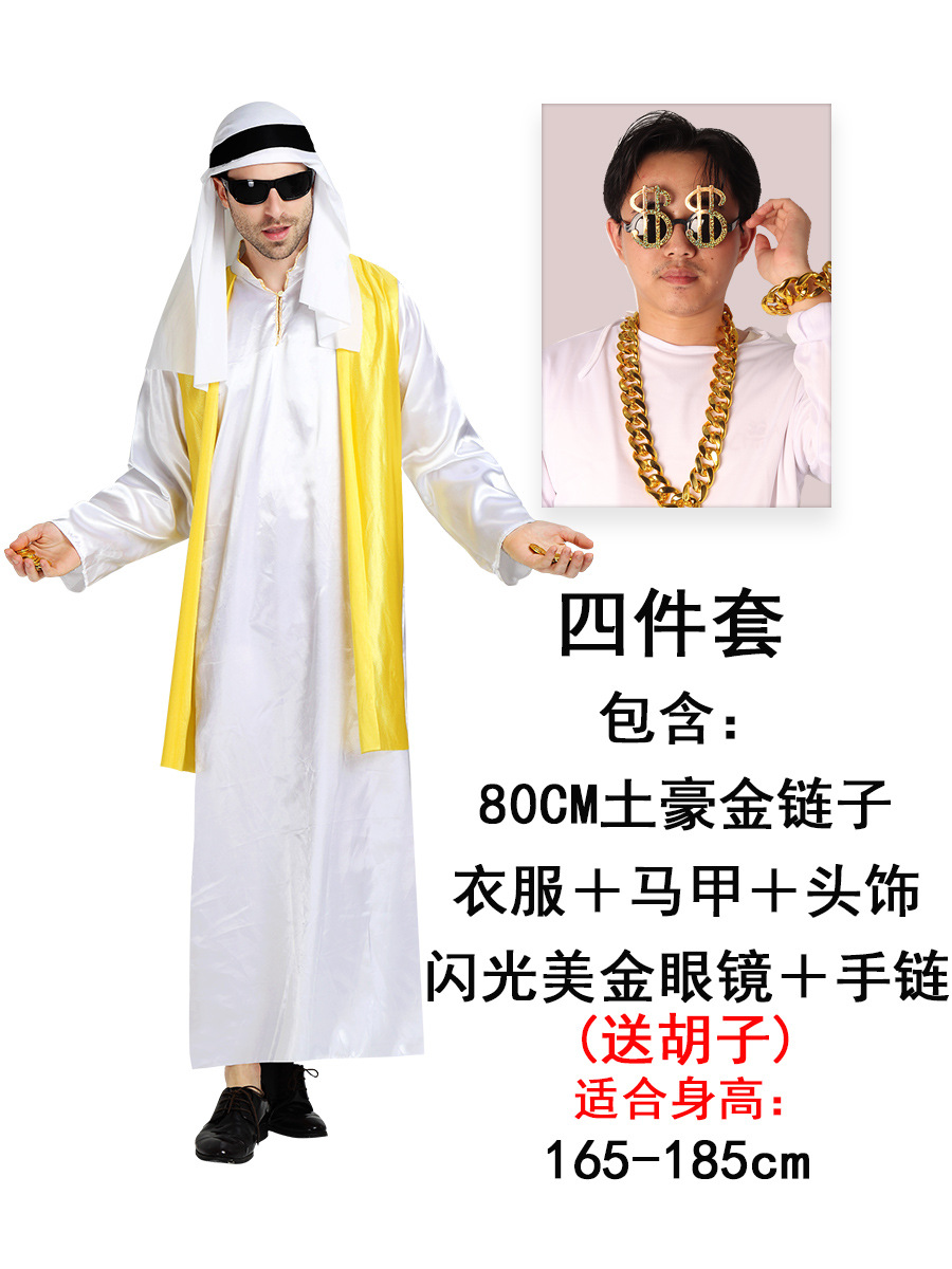 Color: Pure white Arabic + flash glasses + 80cm tyrant gold necklace + tyrant gold bracelet (send beard)
