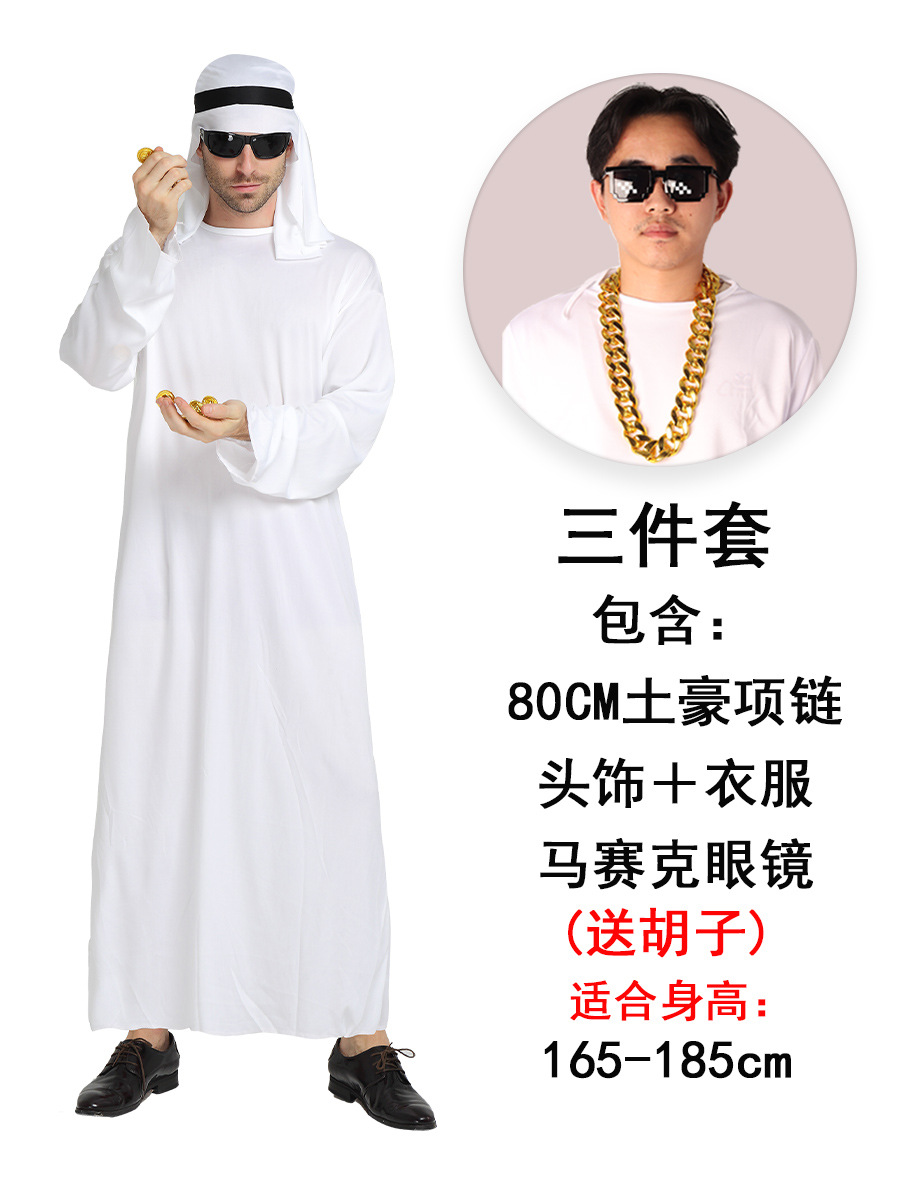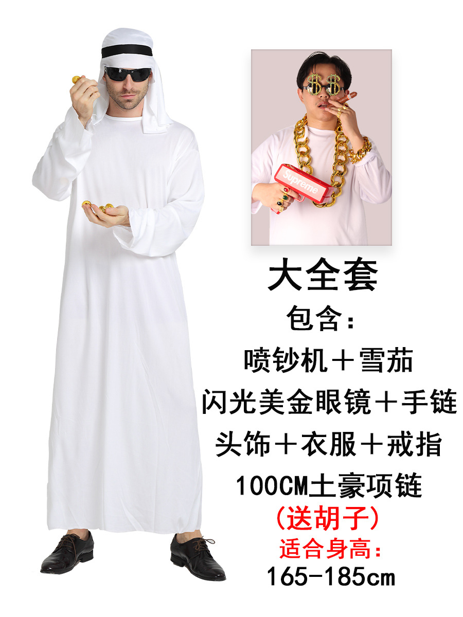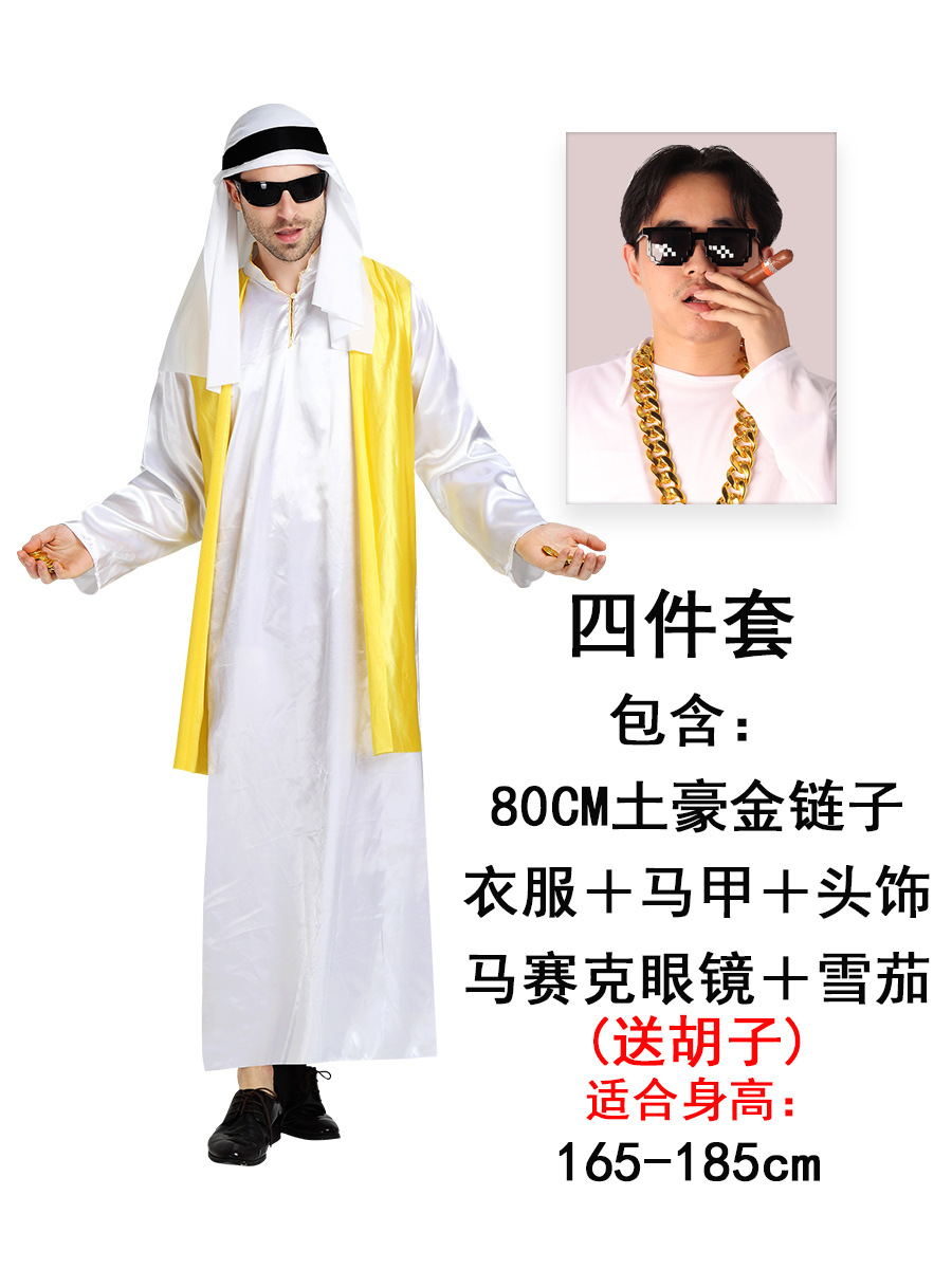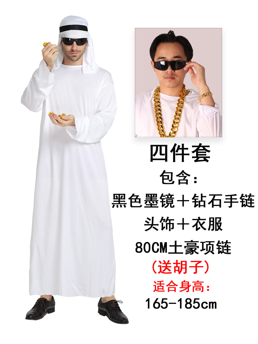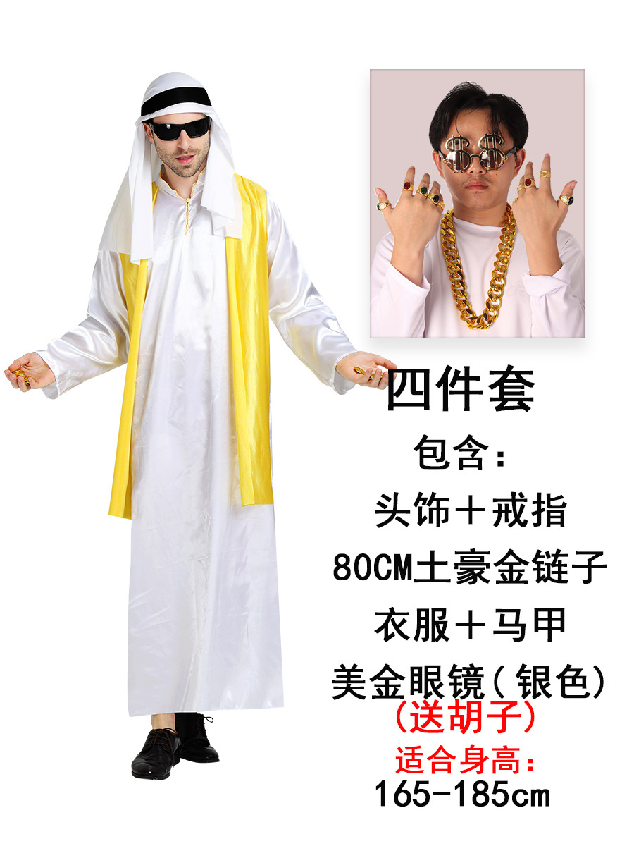 Color: Pure white Arabic + flash glasses + 80cm tyrant gold necklace + tyrant gold bracelet (send beard)
