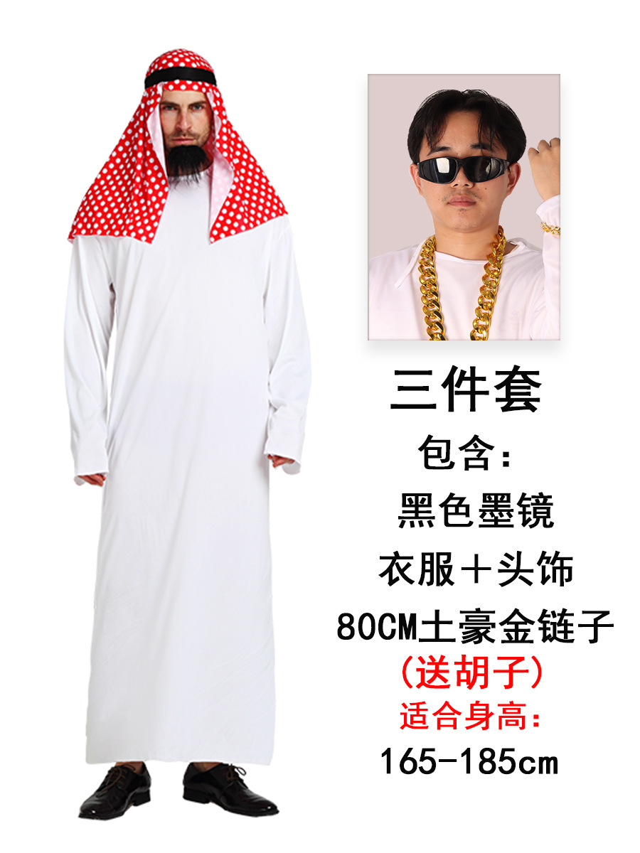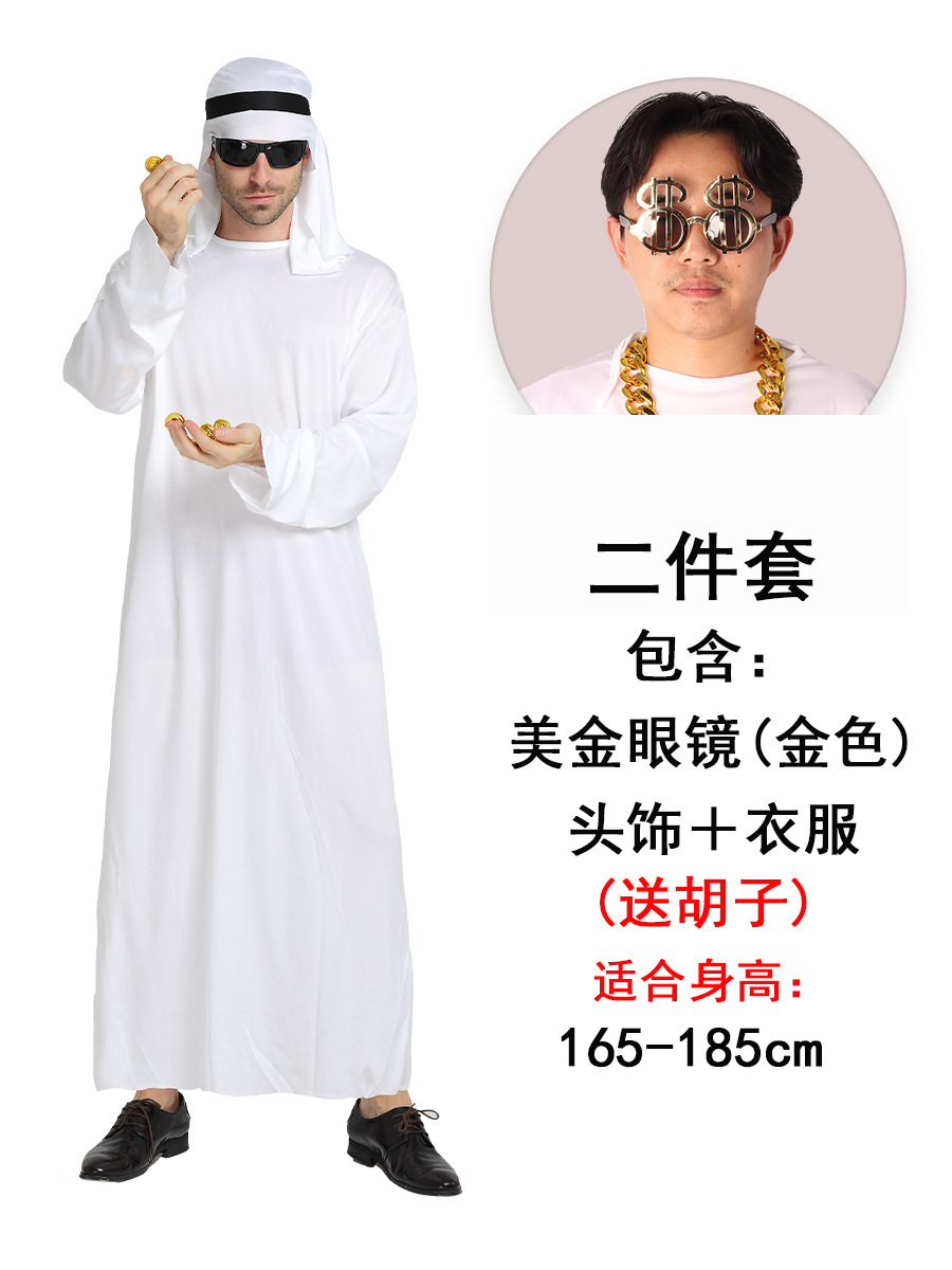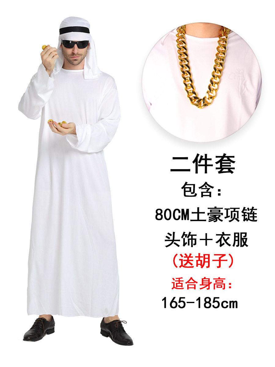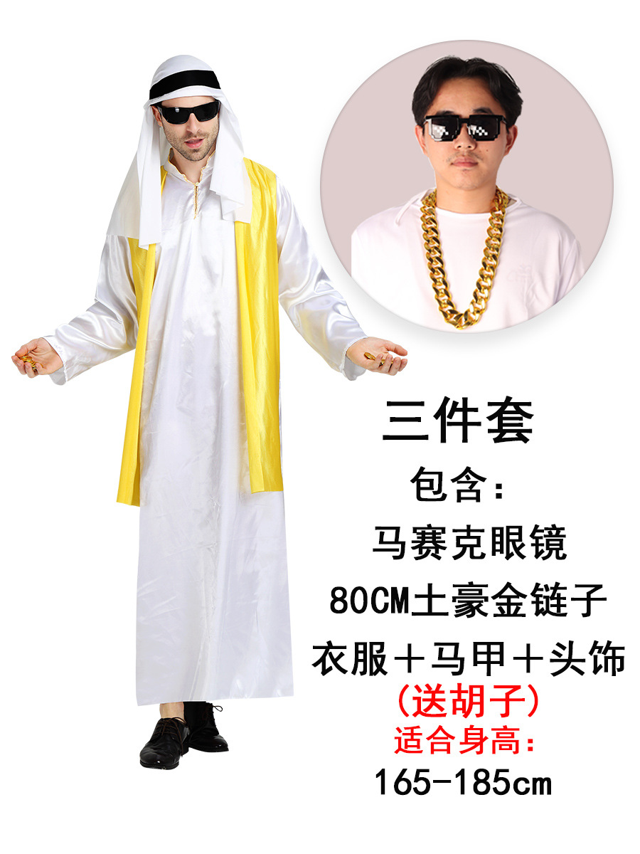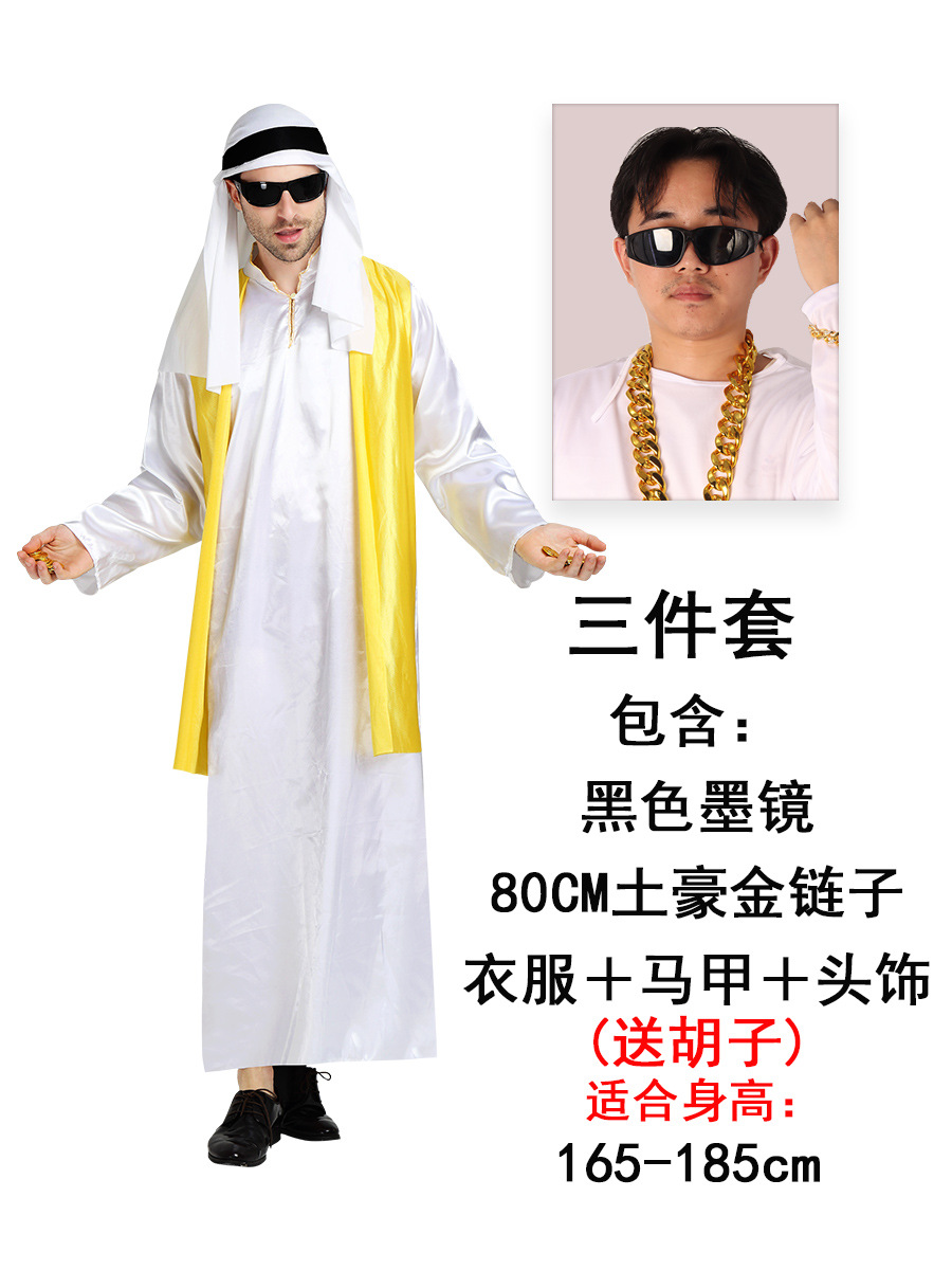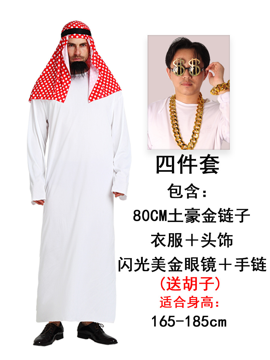 Color: Pure white Arabic + flash glasses + 80cm tyrant gold necklace + tyrant gold bracelet (send beard)