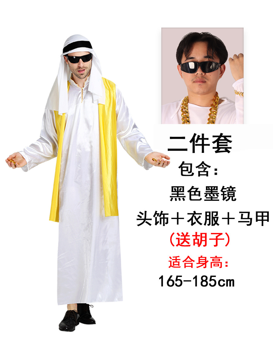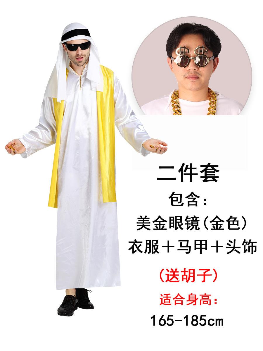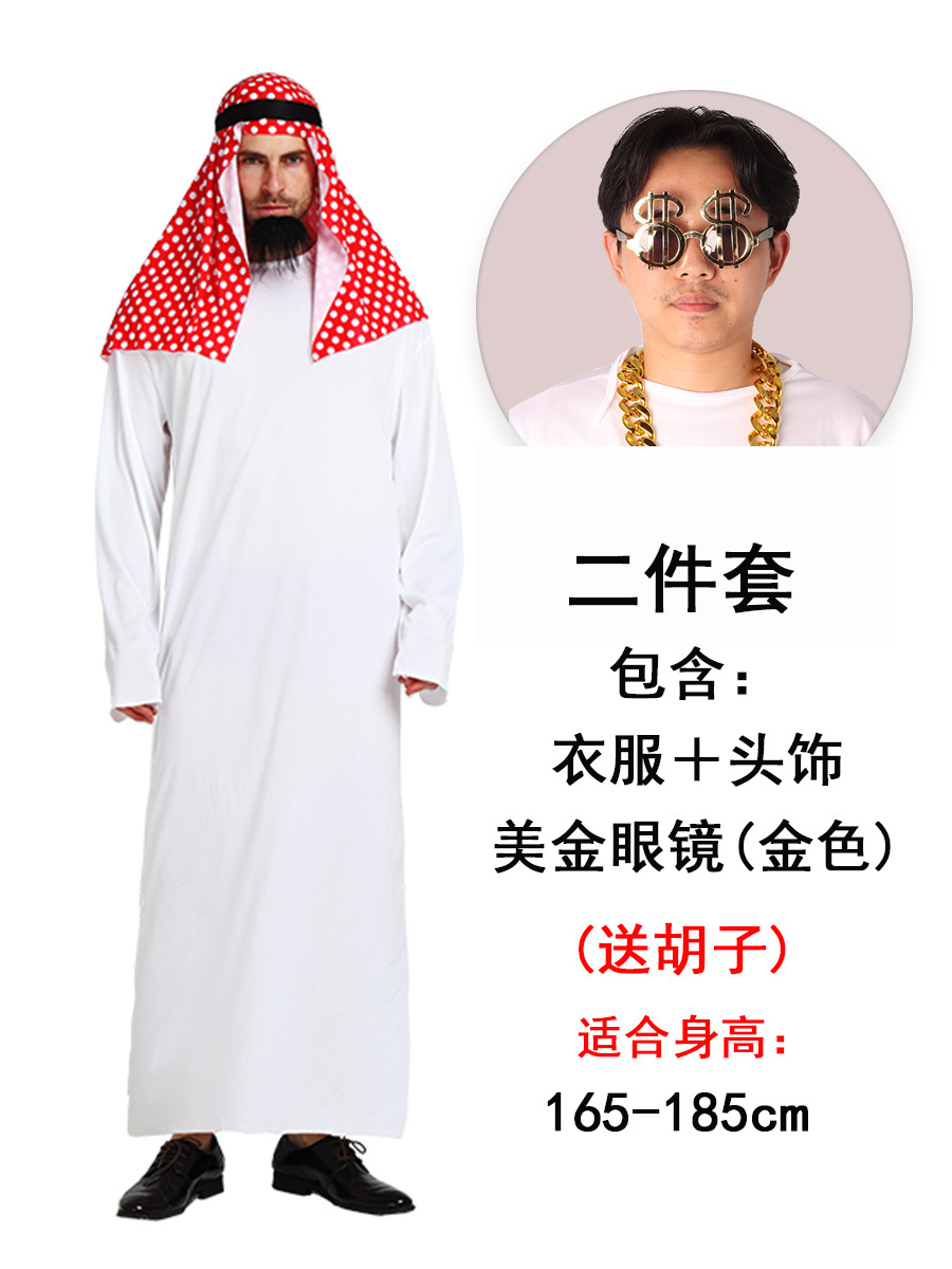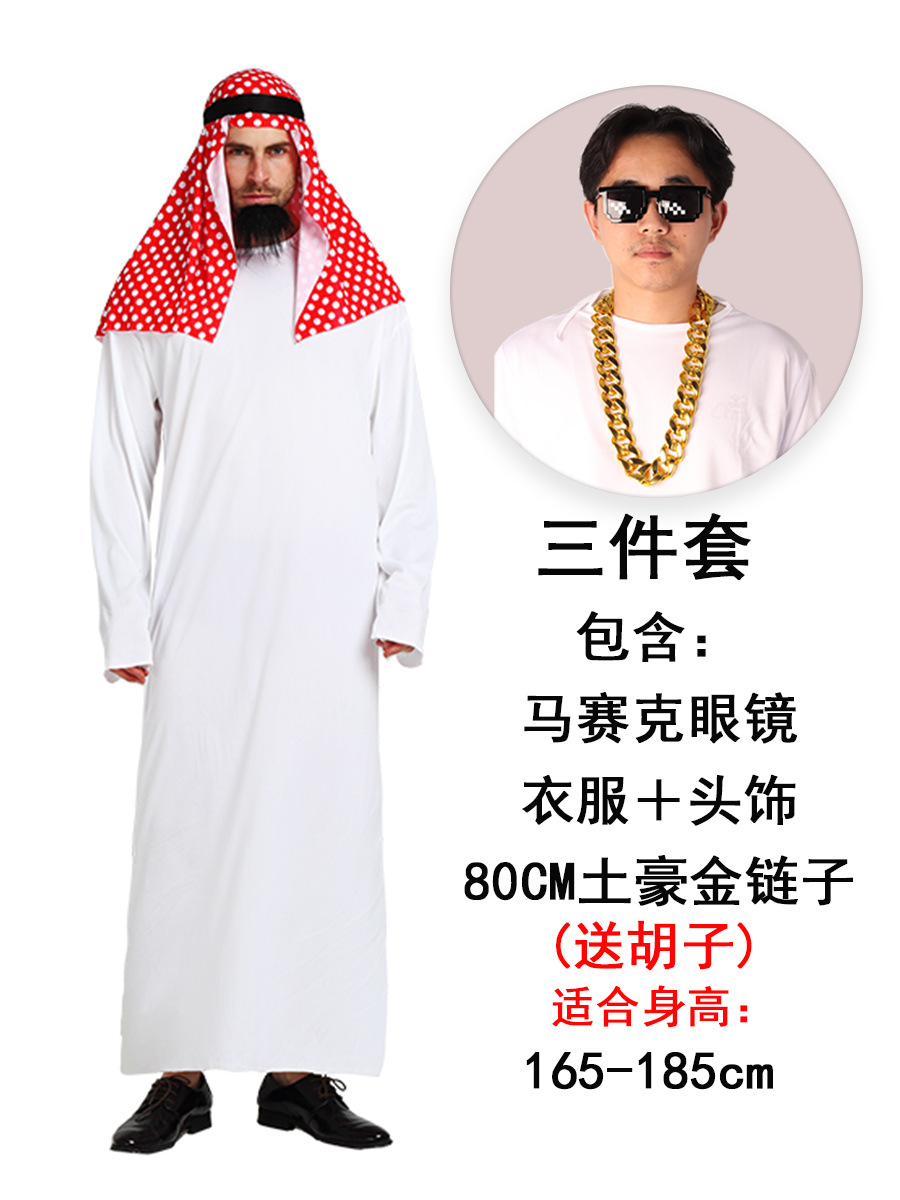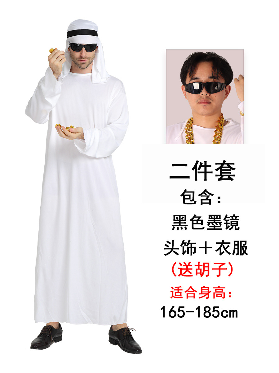 Color: Pure white Arabic + flash glasses + 80cm tyrant gold necklace + tyrant gold bracelet (send beard)