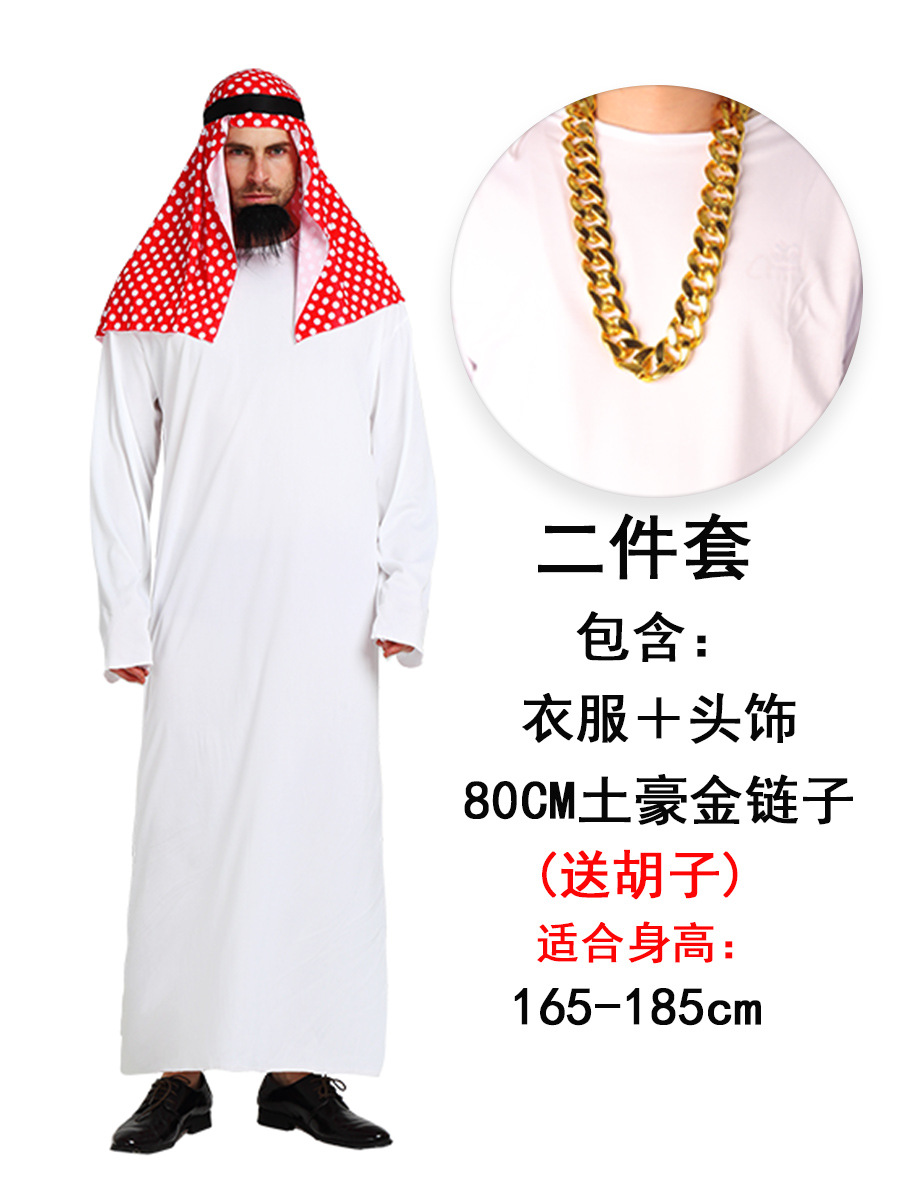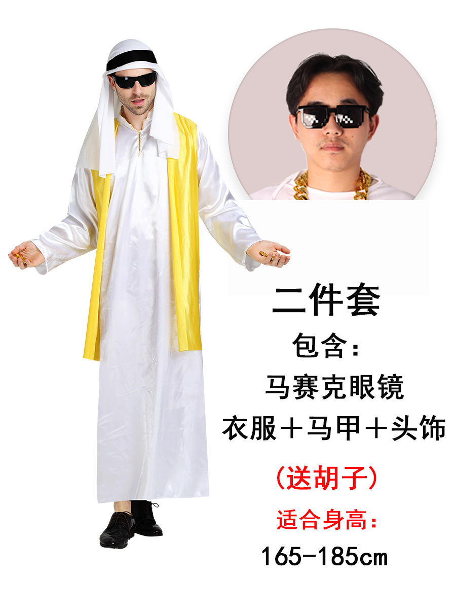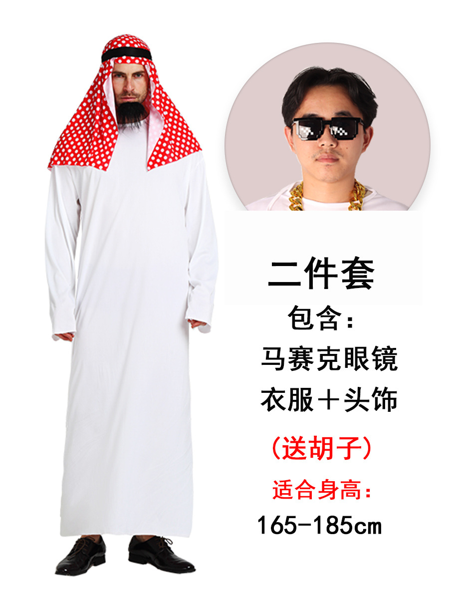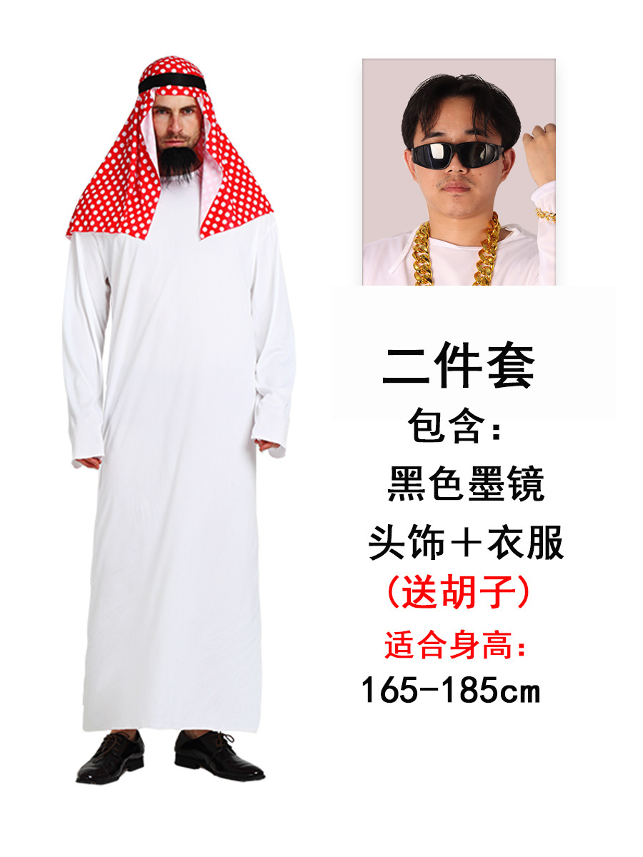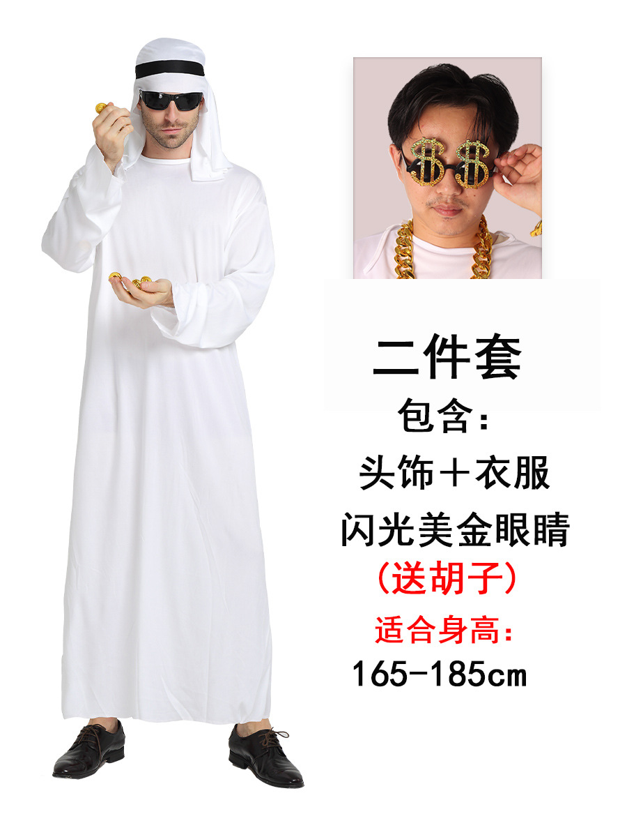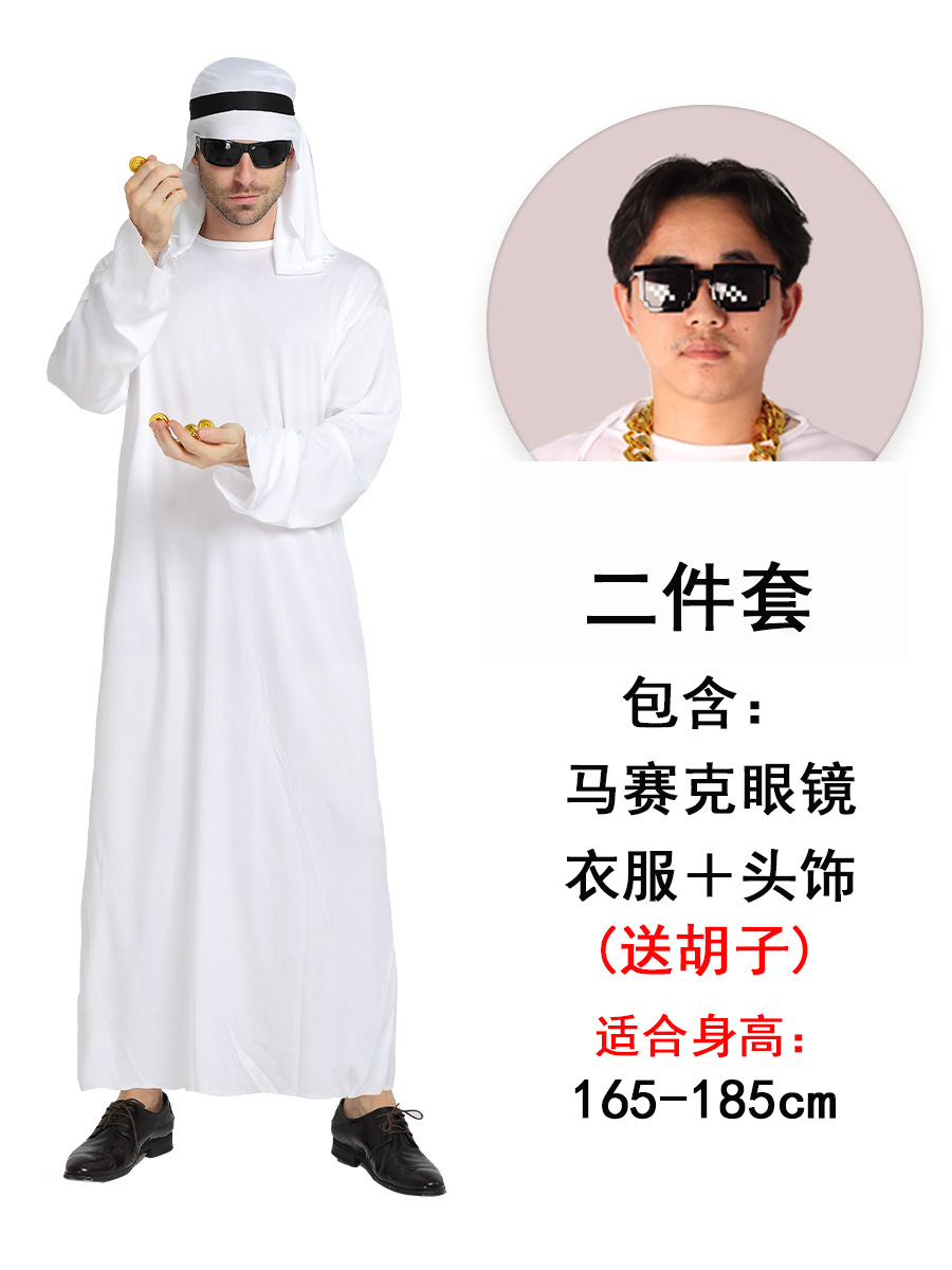 Color: Pure white Arabic + flash glasses + 80cm tyrant gold necklace + tyrant gold bracelet (send beard)