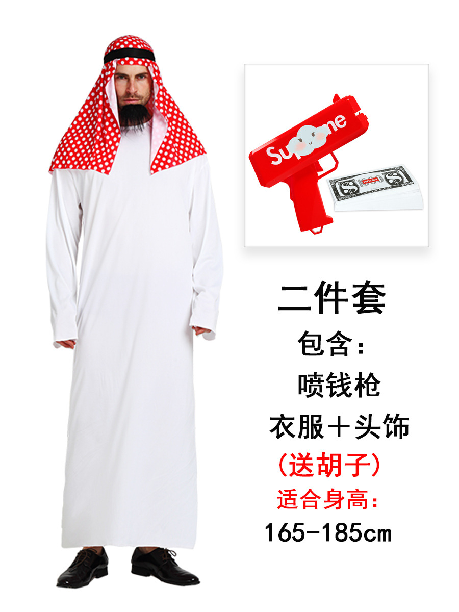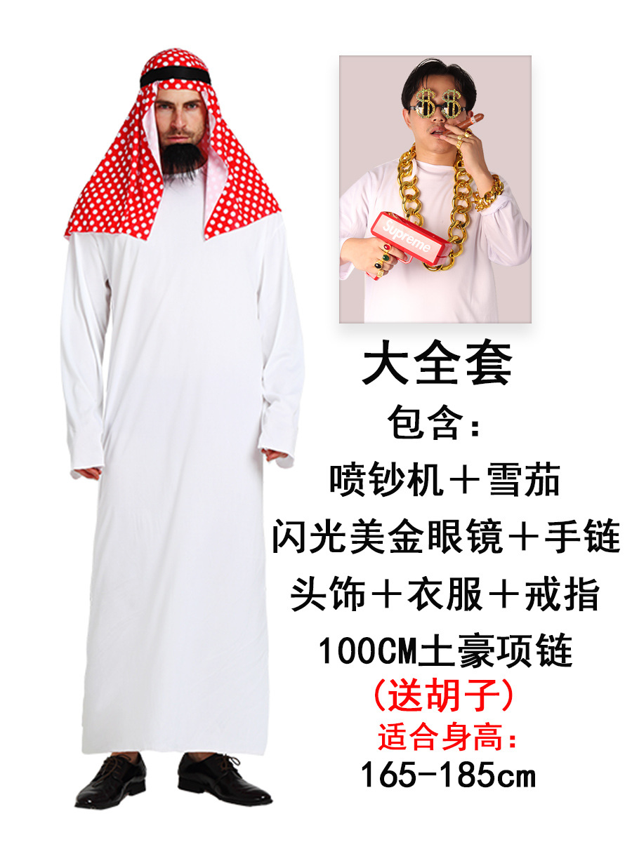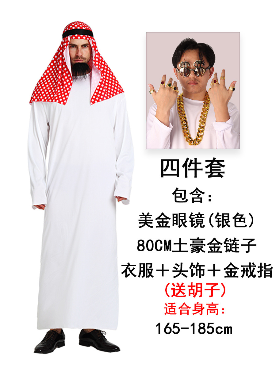 Color: Red headscarf Arab + US dollar glasses + 80cm tyrant gold necklace + five rings (send beard)