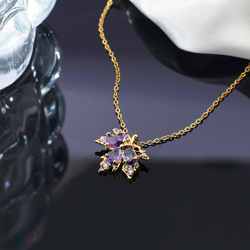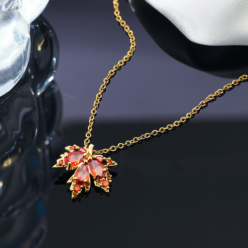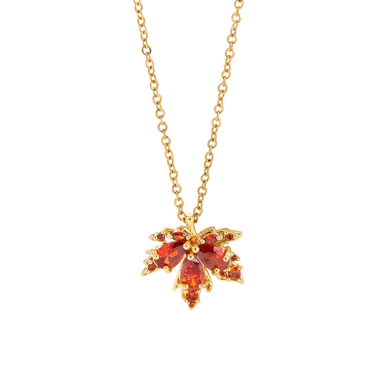 Color: Xl1783-25 gold red zirconium maple leaf necklace