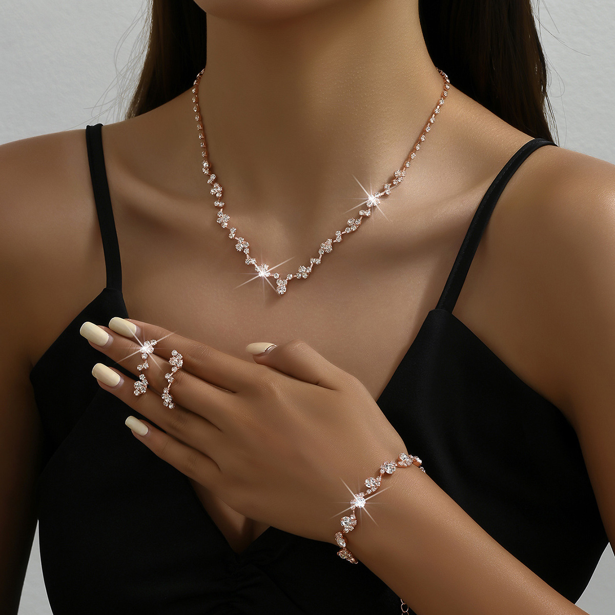 Wholesale Jewelry suit necklace earrings bracelet three-piece rose gold cross-border supply