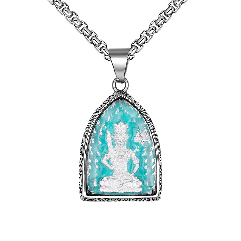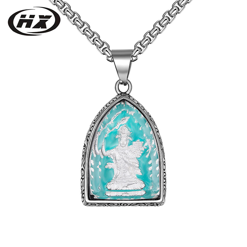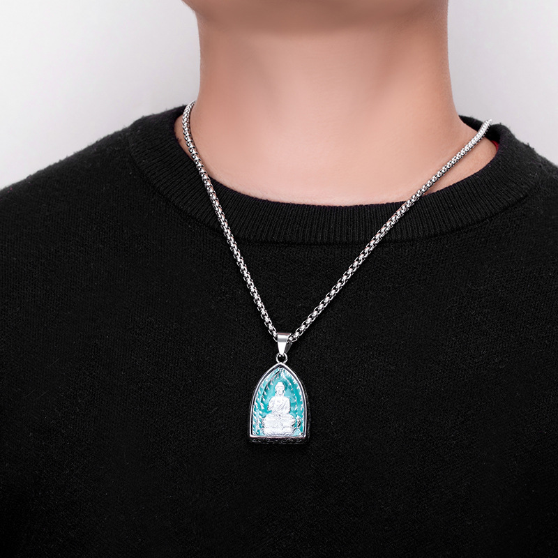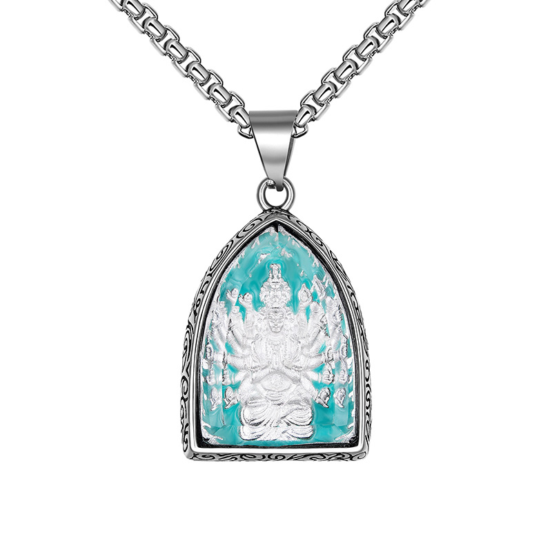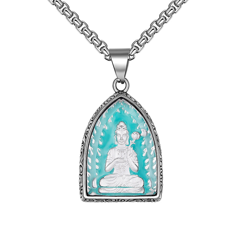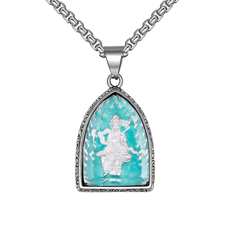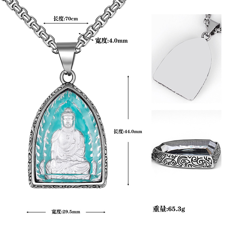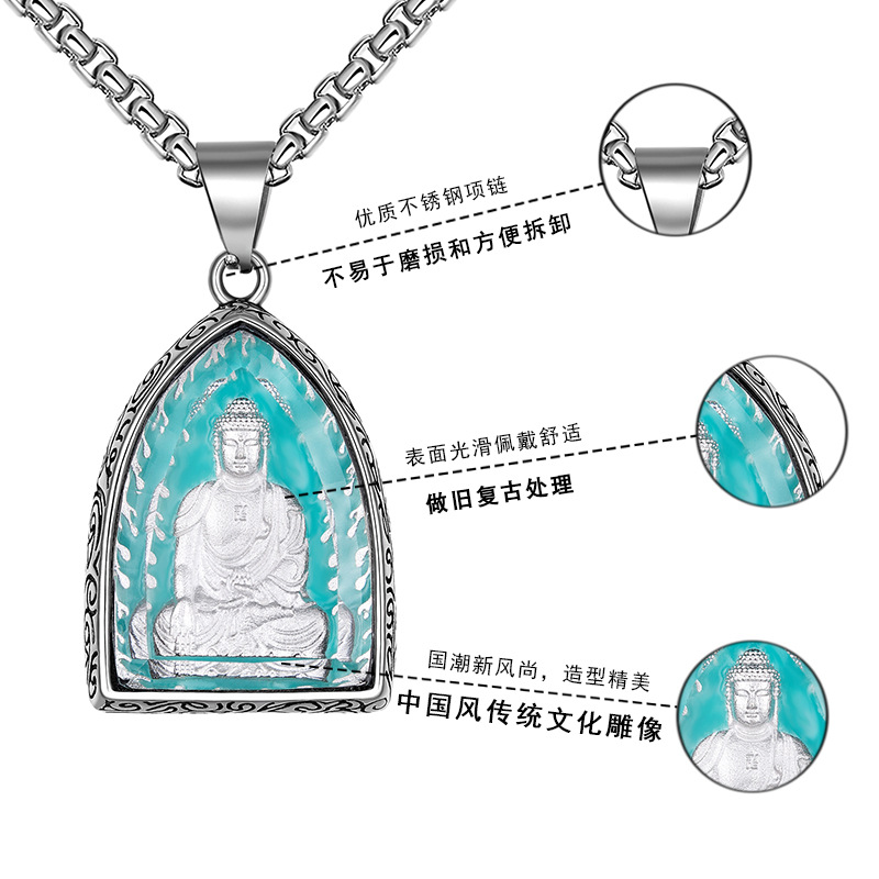 钛钢十二生肖本命八大守护佛牌吊坠男士复古不锈钢夜光项链批发 |