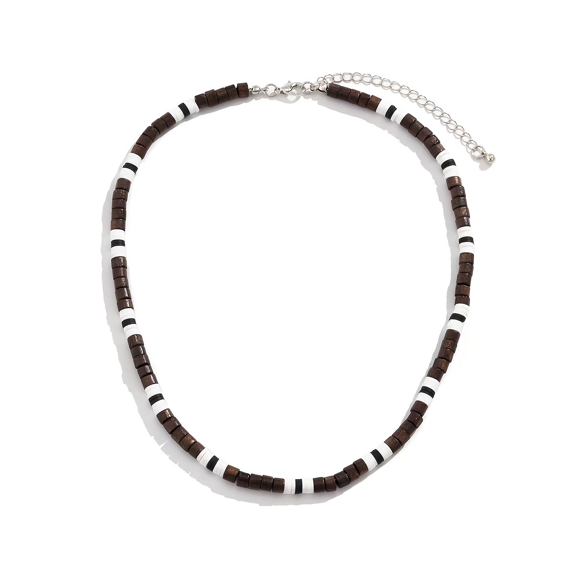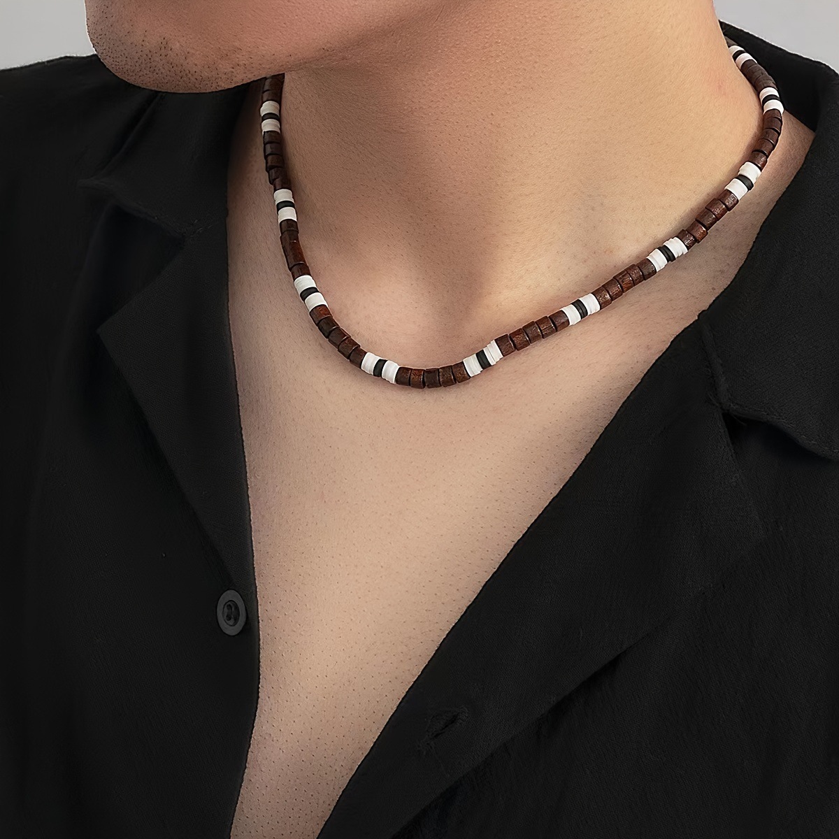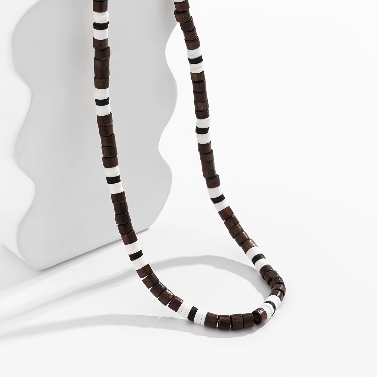 2023 new necklace men's bohemian style soft pottery stitching wooden beads clavicle chain simple all-match sweater chain