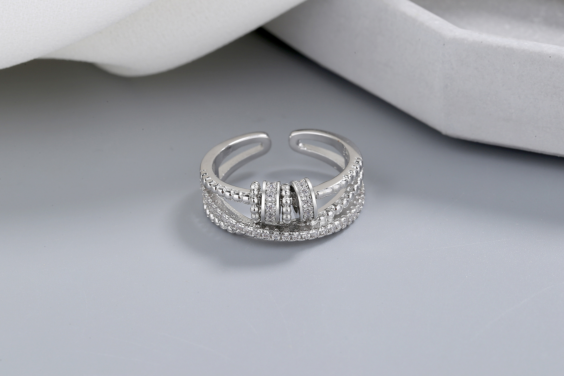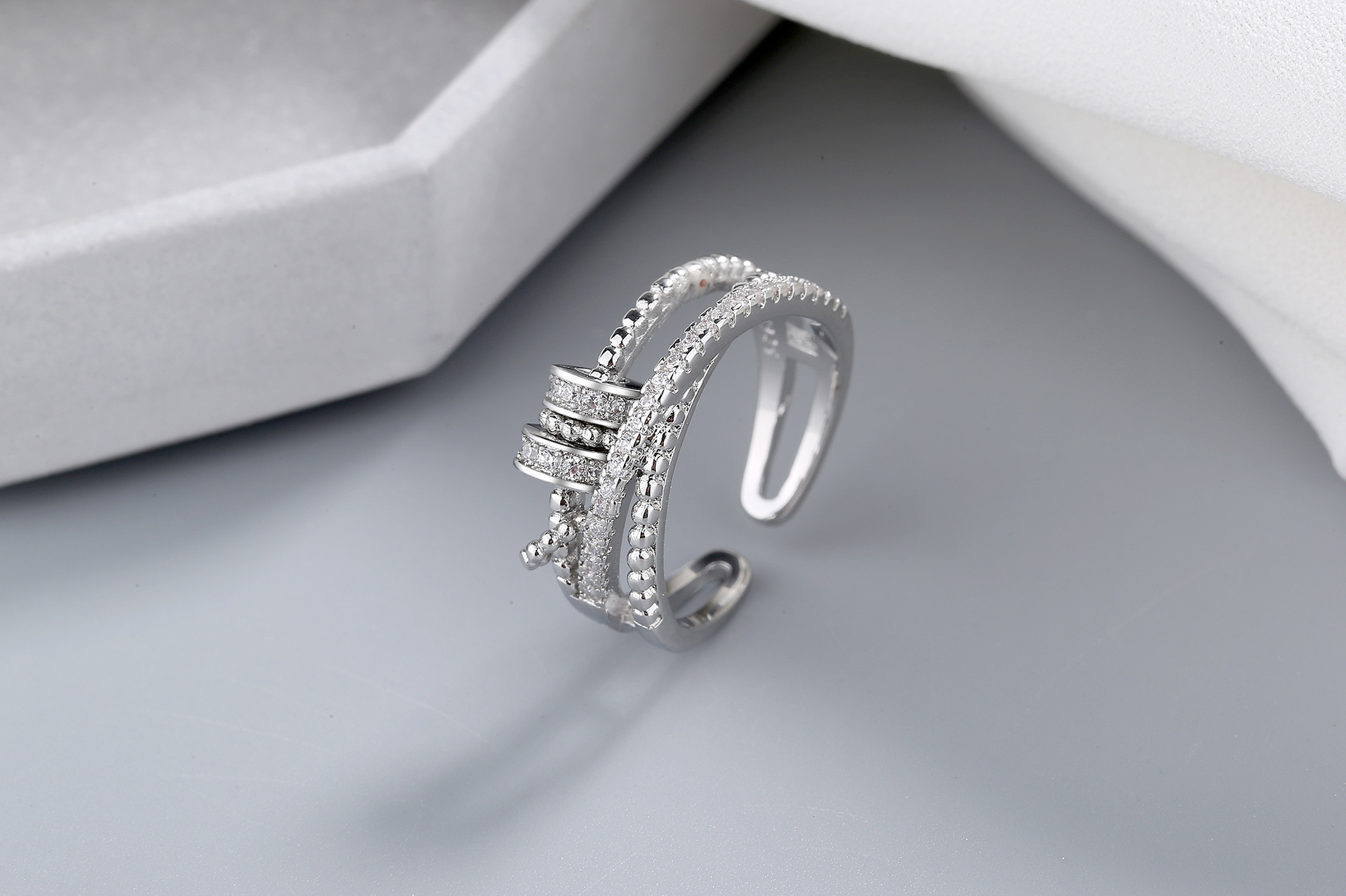 Cross-border Explosions Fashion Smart Anxiety Rings Women's Personality Double-layer Zircon Open Finger Ring