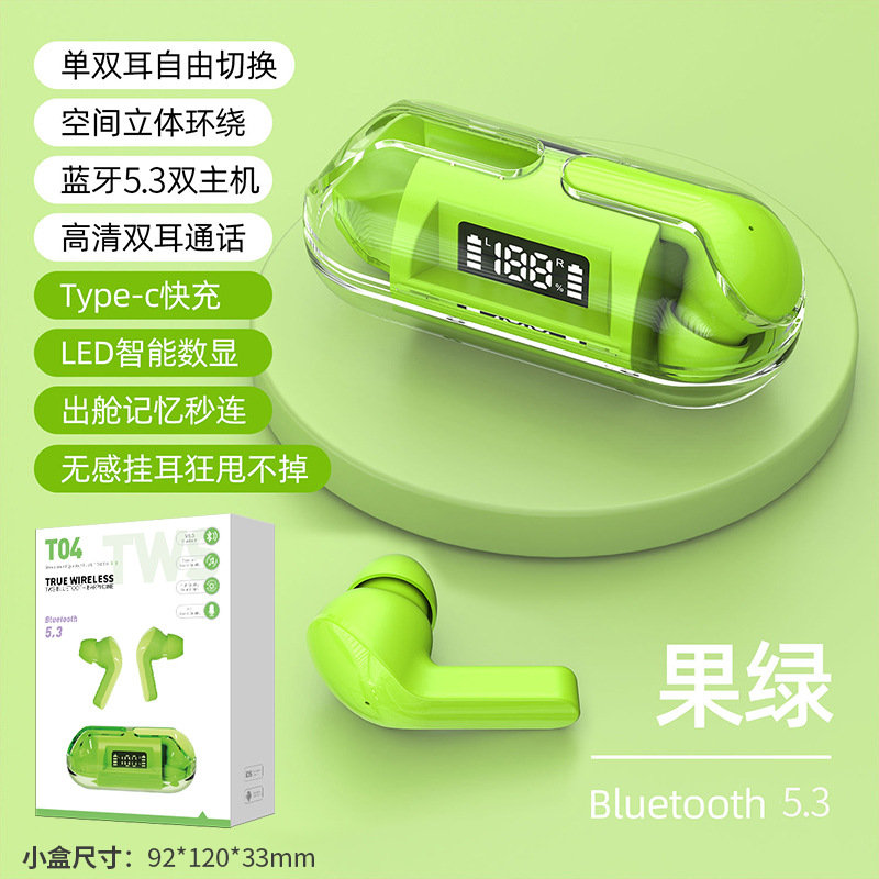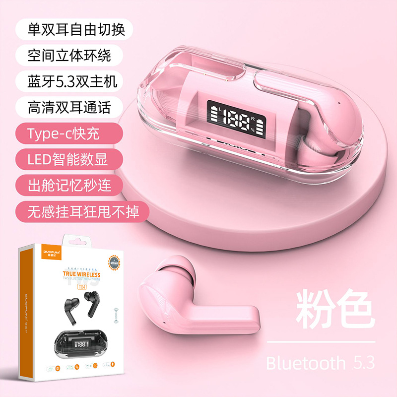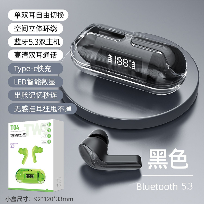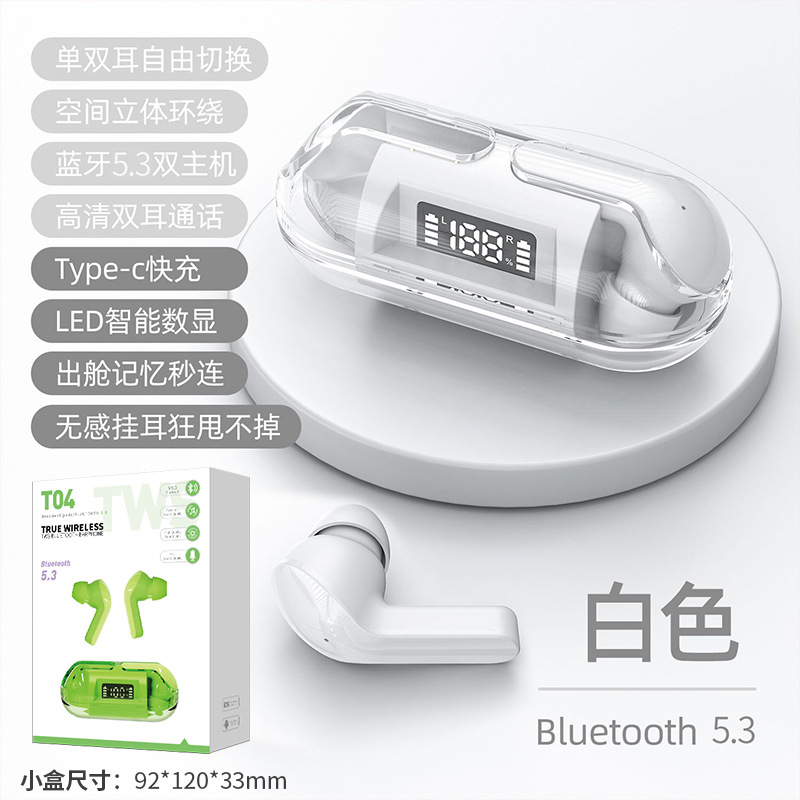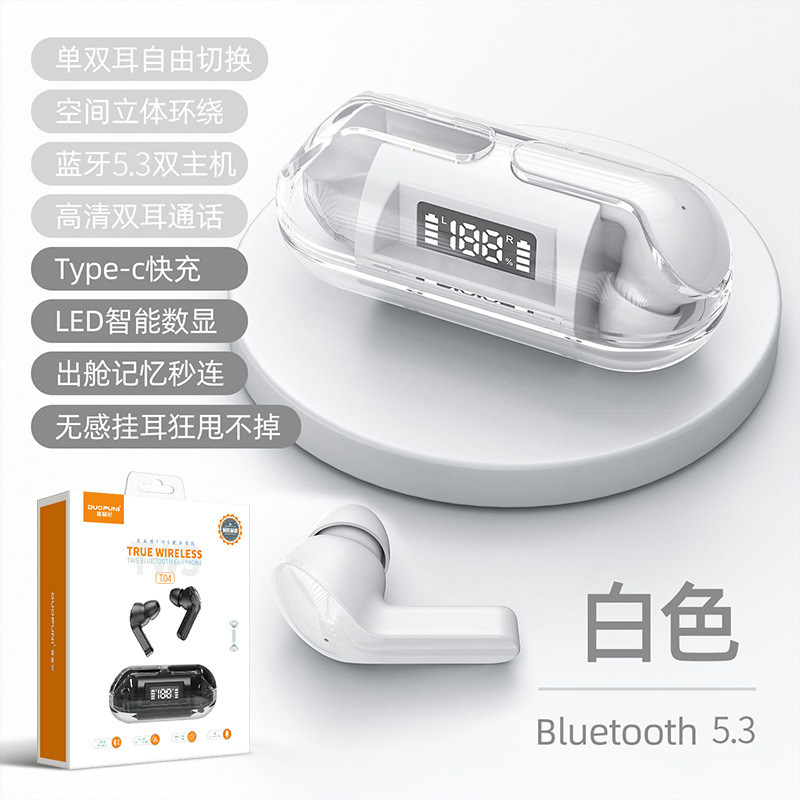产品名称:佰通T04智能数显透明仓蓝牙耳机