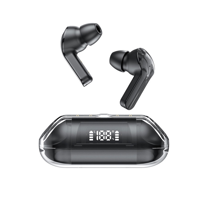 真无线数显TWS透明蓝牙耳机双边立体声运动入耳式铜环自带充电仓