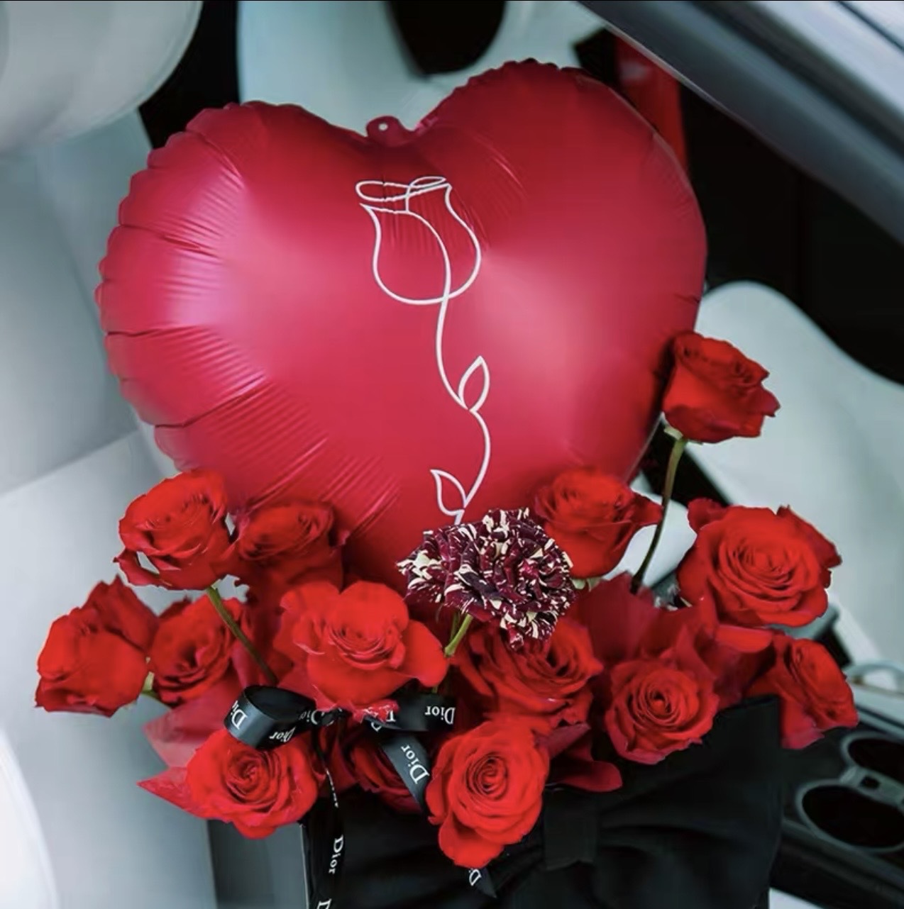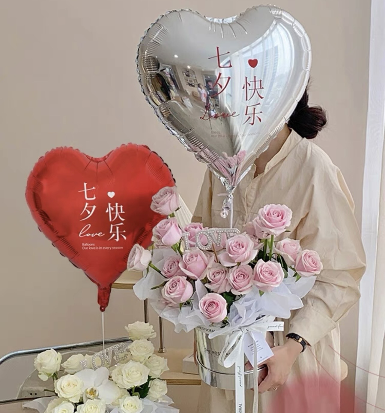 Qixi Valentine's Day love balloon decoration table floating bouquet jewelry shop shopping mall ShowCase booth layout confession props