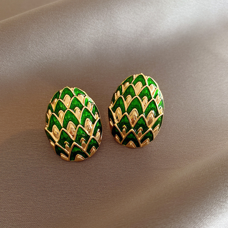 Color: Green-Silver Needle Oil Dropping Oval Pattern Earrings