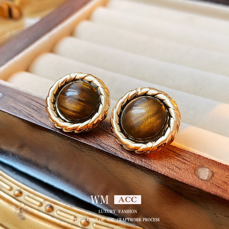 Color: 17# silver needle dumb gold pearl surround striped earrings