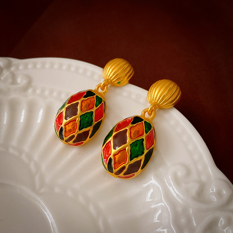 Color: 18# Middle Ancient Oval Pattern Oil Dropping C- shaped Ear Buckle