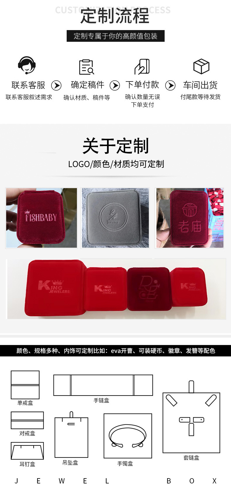 Specifications and models: Rounded corner velvet box-coffee ring; ready stock