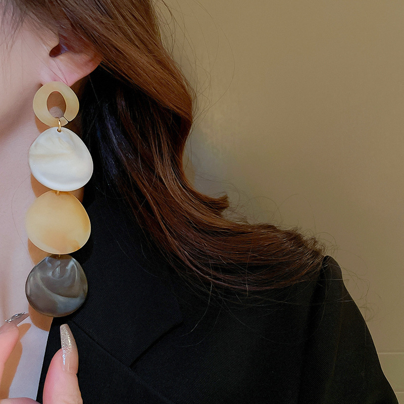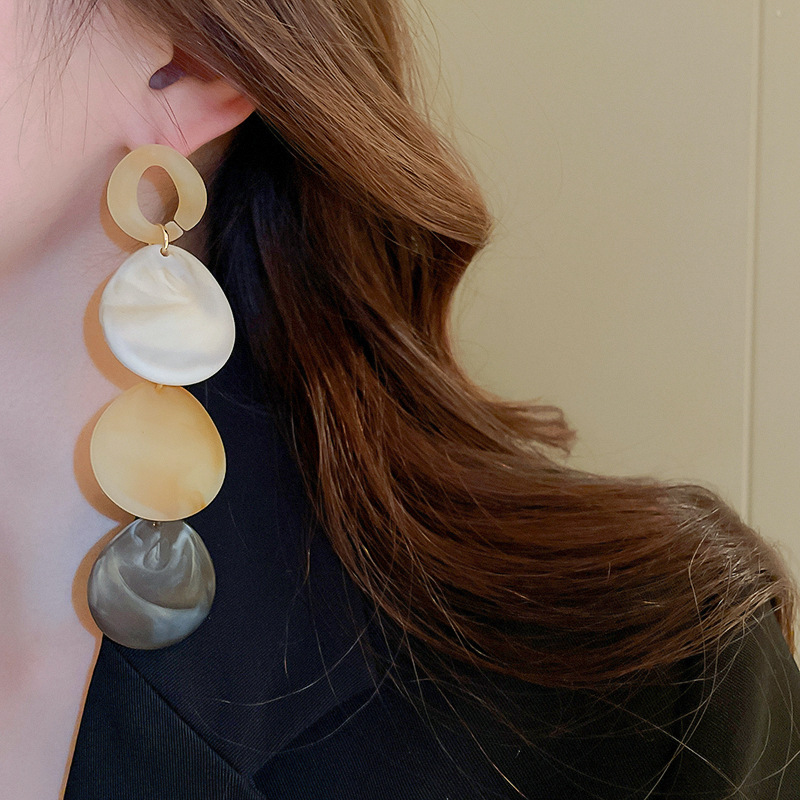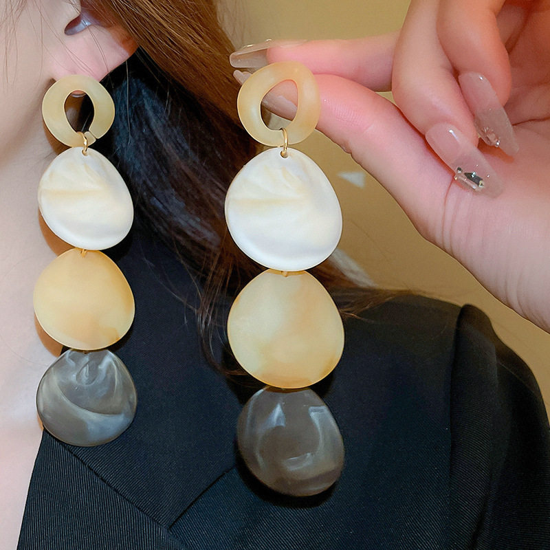 Exaggerated Acrylic Water Drops Long Tassel Silver Pin Earrings Distinctive European and American Niche Temperament Advanced Sense Earrings for Women