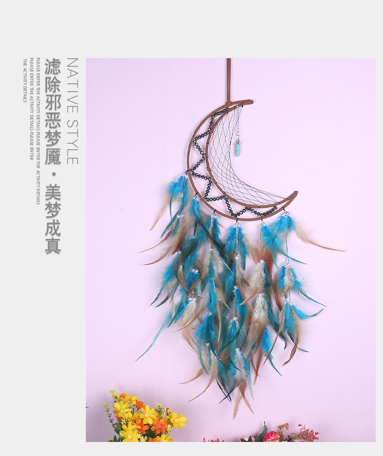 Wholesale vintage Crescent pendant dream catcher feather wall decoration pendant home dream catcher girl heart ornaments