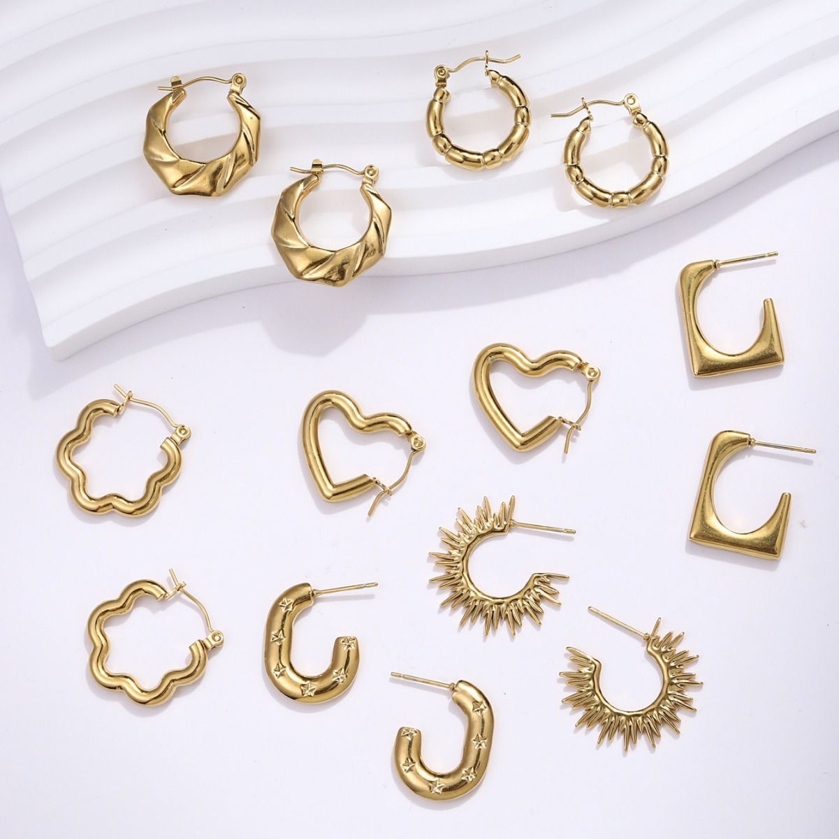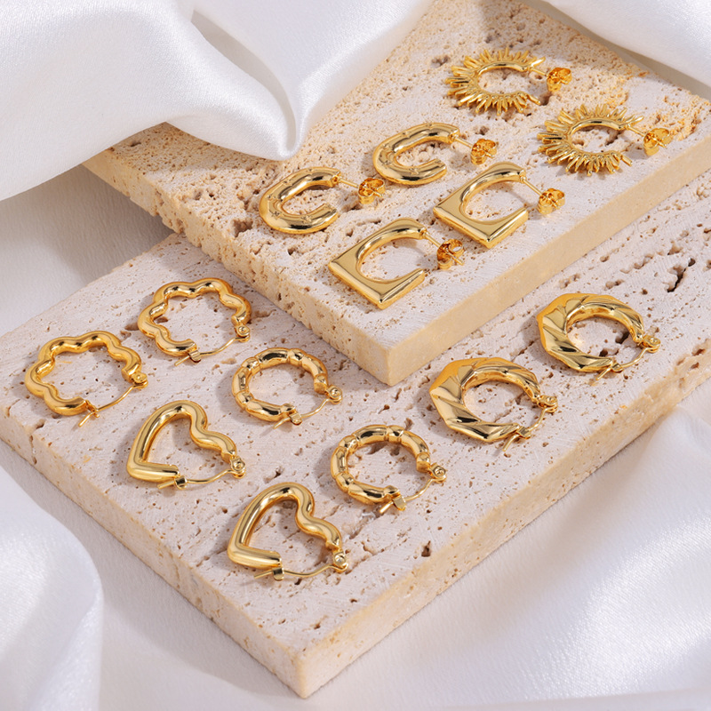 Titanium Steel Earrings, Asymmetrical Heart 18K Real Gold Electroplated Earrings, Summer Women's High-End Long-Lasting Color-Preserving Earrings